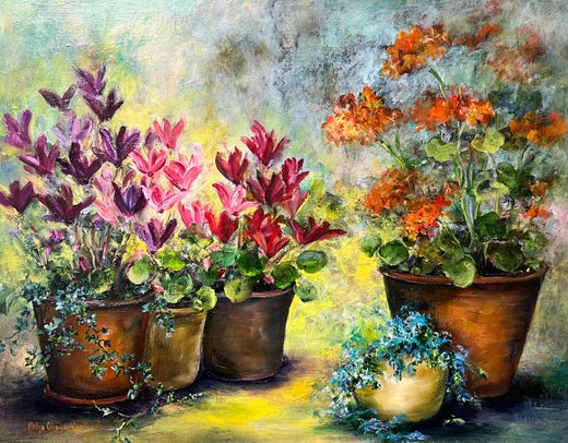 Ma maison et mon jardin sont devenus mes "expressions artistiques". Dans mon esprit, je "voyais" et peignais - les nuances de différentes couleurs dans un champ, les verts dans un parc, les reflets sur l'eau, l'écoulement d'une vapeur ou l'immensité du ciel.