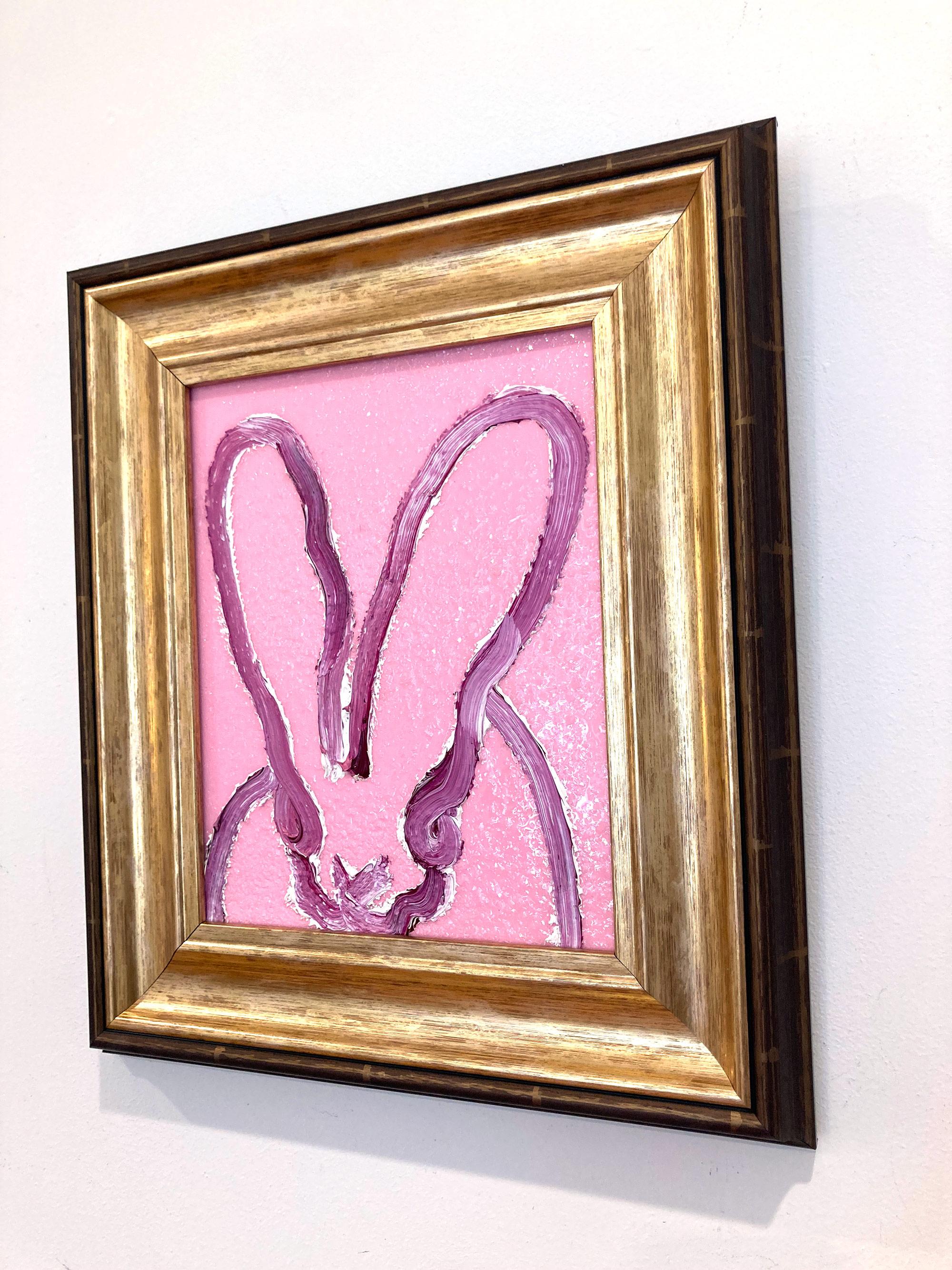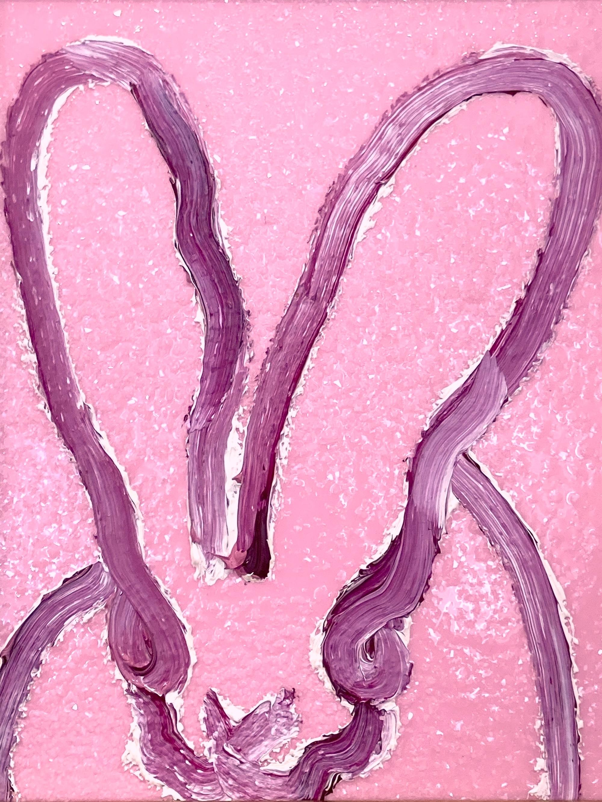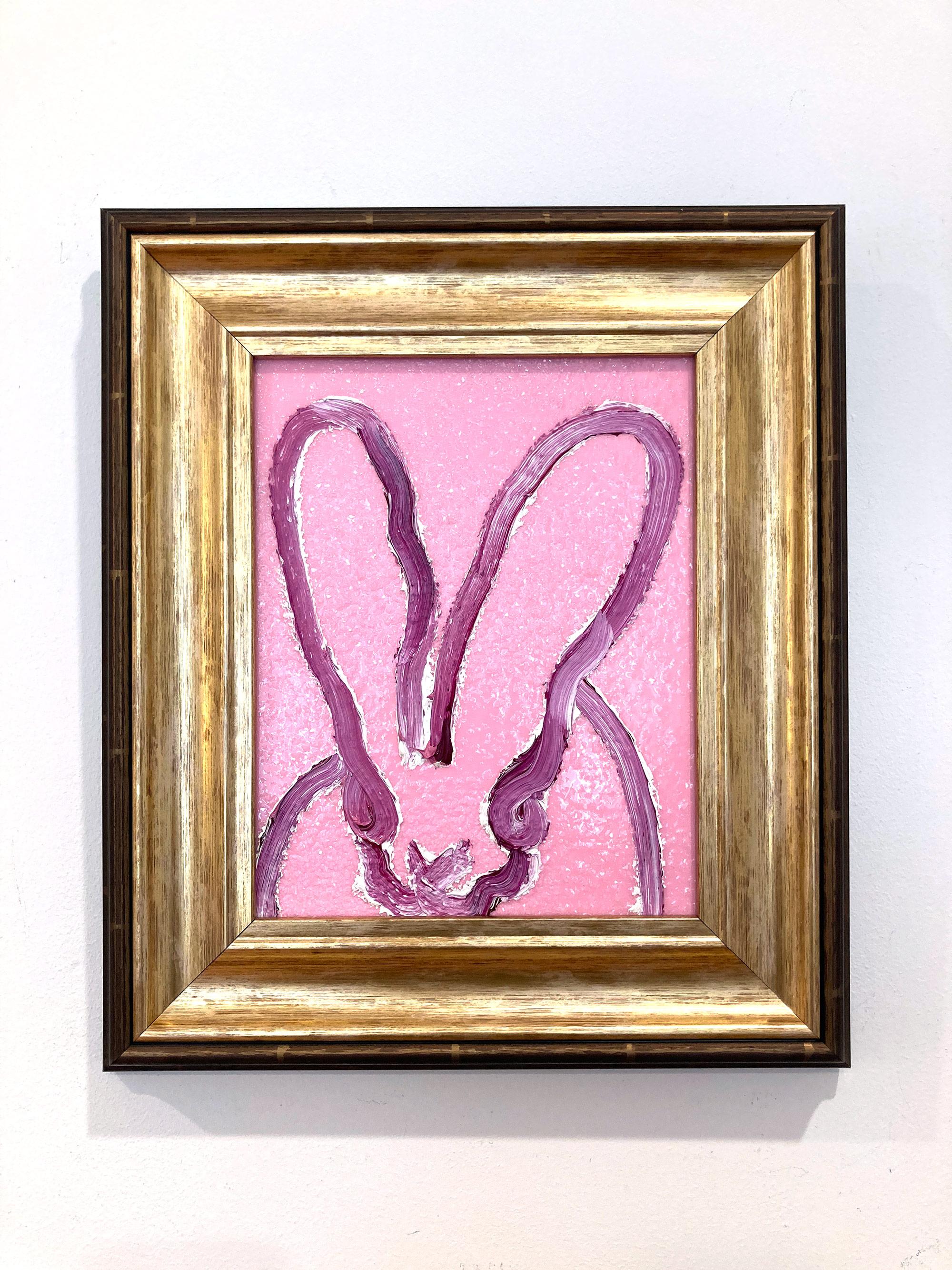 Hunt Slonem"Pink Morevia" Lapin sur fond de poussière de diamant rose Peinture à l