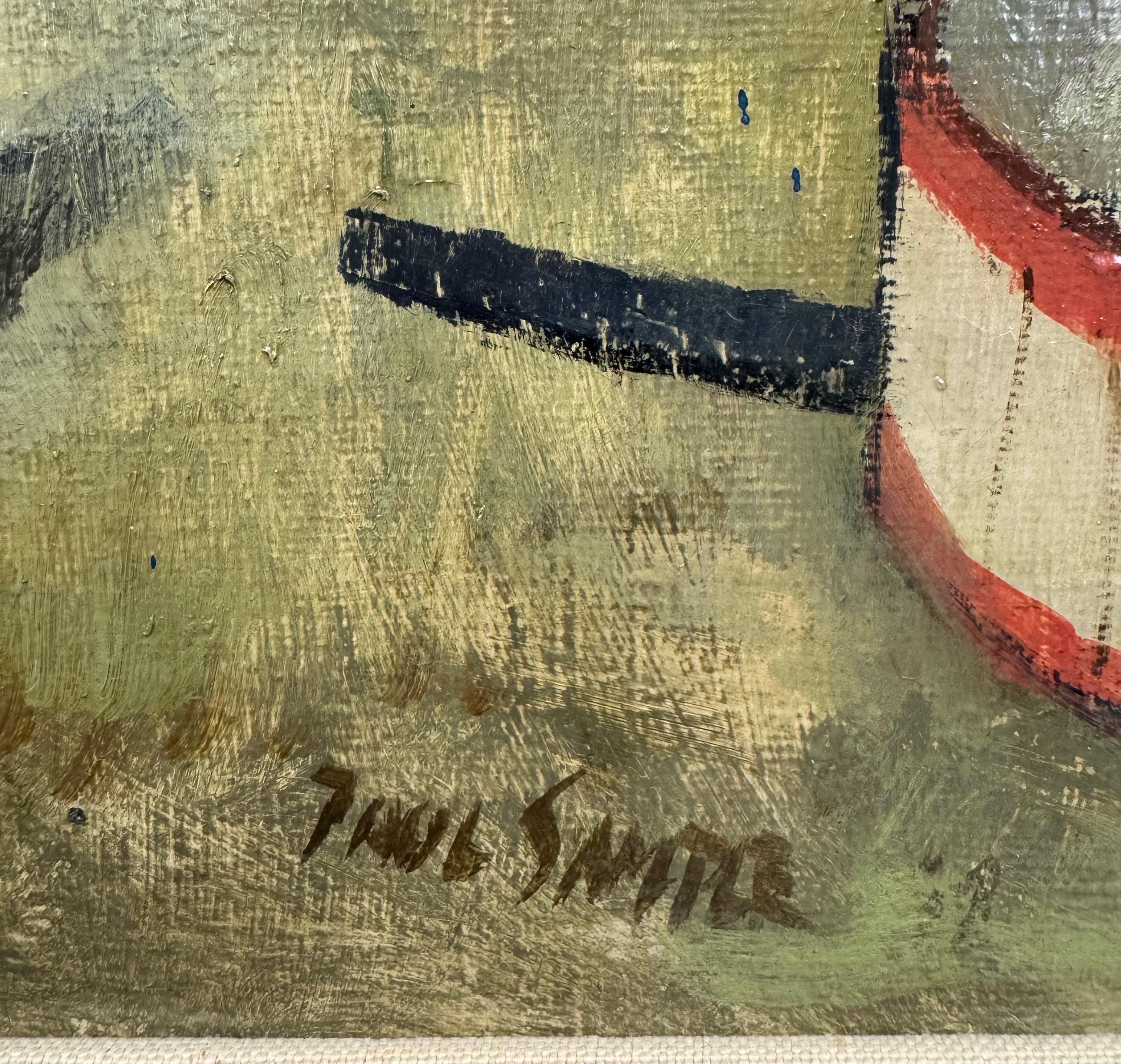 "Boats Resting, Nantucket, 1940" Impressionniste américain Scène de port Quai Huile