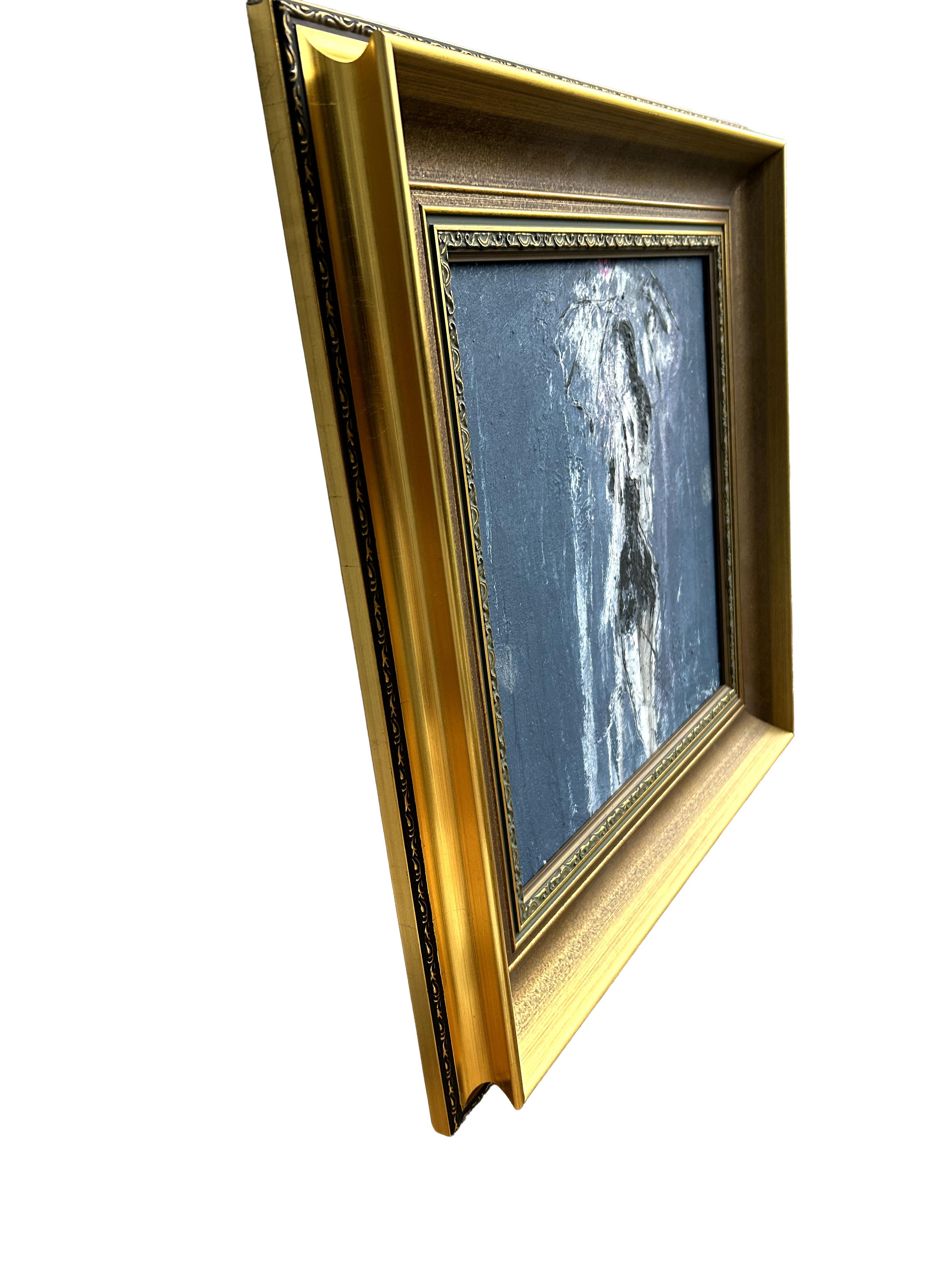 Encadré dans une moulure en bois contemporaine de haute qualité.