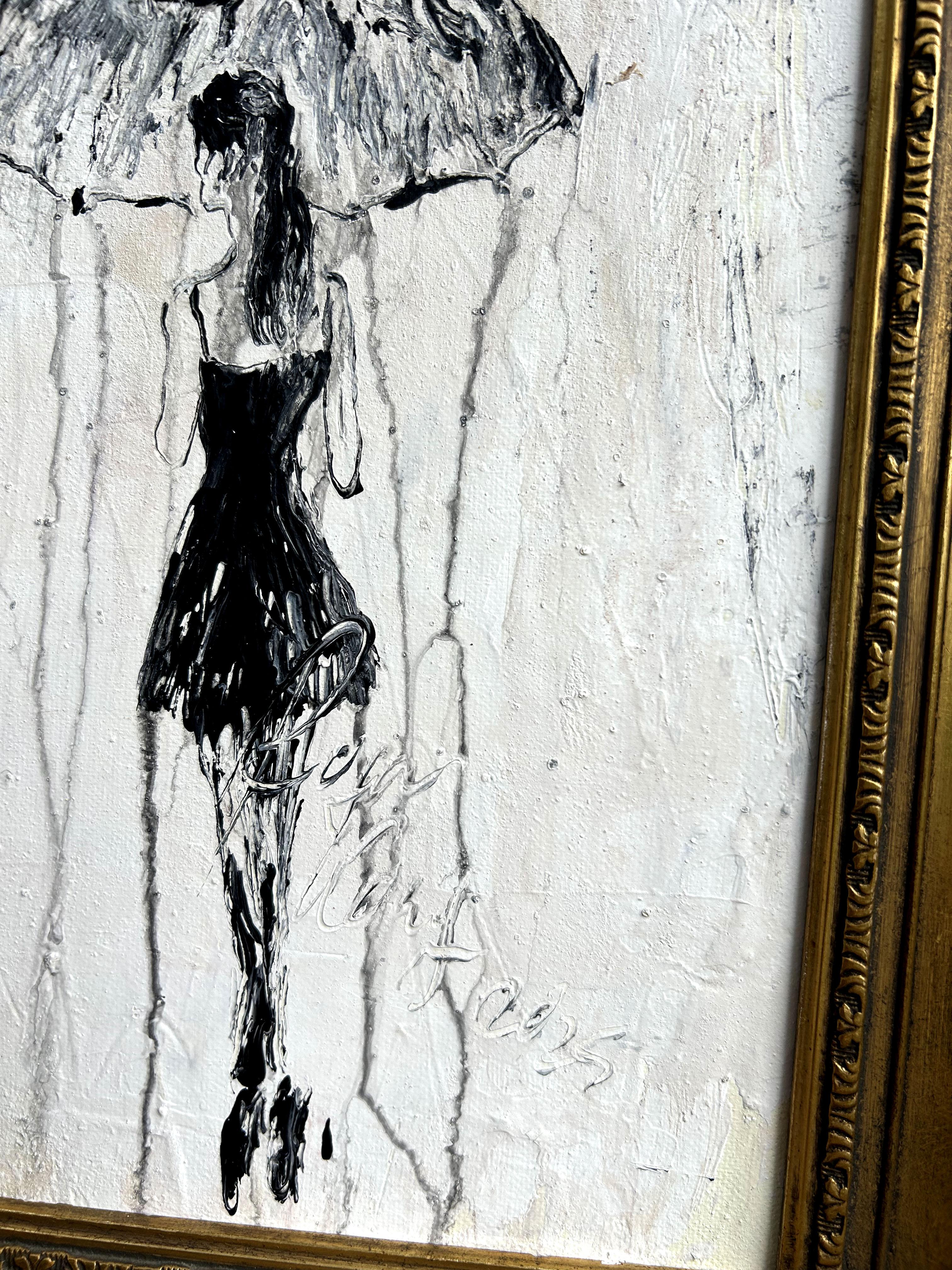Precipitate XXVII, peinture originale, pluie, Umbrella, personne
