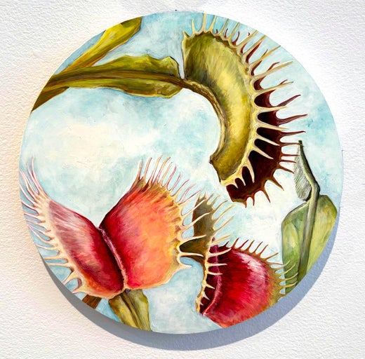 À travers mes peintures, j'explore la nature morte en tant qu'environnement psychologiquement construit, faisant allusion à la cour française d'avant la Révolution, dont les allégories, les contes de fées de situations adultes inévitables, sont reléguées à des subtilités enfantines. Je suis particulièrement influencé par les œuvres de Fragonard et la critique qu'il a reçue un jour, selon laquelle ses peintures contenaient "trop de verdure" Mes environnements vous poussent à vous noyer. Les tresses deviennent du kudzu. Ce sont des récits visuels de mythes et de rumeurs. Ce sont les rêves de la dickensienne Miss Havisham.