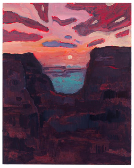 " Dans mes tableaux, j'endosse le rôle de poète-peintre, créant des paysages sentimentaux et idéalisés, dépourvus de toute figure ou de tout dispositif formel traditionnellement utilisé pour raconter une histoire. En m'inspirant de thèmes que l'on retrouve fréquemment dans la peinture de paysage romantique allemande, où l'artiste sert de médiateur entre la création et le divin et est chargé d'examiner la nature et son esprit, je crée des portraits intensément personnels d'espaces calmes et méditatifs qui incitent à la contemplation et à la réflexion. Ces paysages construits expriment ma propre solitude et ma mélancolie, à la recherche d'un moment de sublimité, dans l'espoir d'évoquer chez le spectateur une réponse subjective et émotionnelle au monde naturel. En quête de tranquillité et de paix, ces paysages introspectifs offrent un répit dans le chaos et le bruit du monde moderne. En utilisant le paysage comme un dispositif omniprésent pour enquêter sur mon histoire personnelle, j'explore le désir de se connecter, d'aspirer à un abri." - Ailier