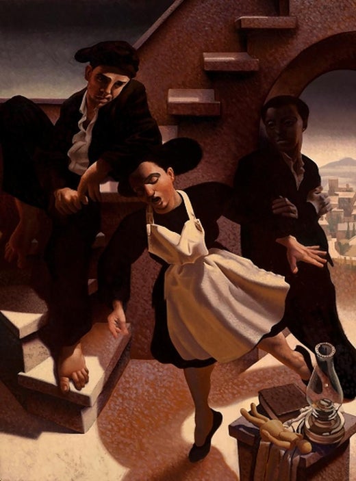 2016 - 2018 - le duo Povey et Schultz a réalisé deux collections de peintures par an, mais tous deux ont simultanément relancé l'évolution de leur propre art individuel, qui avait été mise en pause en 2012. Rafraîchi par son séjour créatif avec Schultz et inspiré par de nouvelles recherches à la National Gallery of Art de Londres, Povey a eu l'idée de combiner les perspectives mixtes cubistes avec les méthodes de peinture de la chair du début de la Renaissance. À travers ses expériences émotionnelles exigeantes, il a conservé la vision intacte de l'amour congruent dans les relations humaines, résumée dans le motif d'un homme chantant longuement la sérénade d'une femme endormie pendant la nuit, perdue dans ses rêveries. Ce sujet, qui fait appel à la force du modernisme et à la tendresse de Raphael, pourrait répondre à son souhait de longue date de créer une meilleure façon de montrer des émotions compliquées et vulnérables. La marchande d'art Angela King a offert à Povey et Schultz une résidence d'artistes dans sa maison sur la rivière fin 2018, et l'isolement paisible a fourni à Povey l'environnement parfait pour secouer les rides de sa percée.