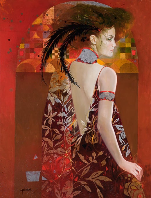 L'artiste espagnol Felix Mas a un don rare pour capturer sa vision de la beauté féminine, un style que beaucoup ont qualifié d'"élégance sensuelle". Ses femmes sont lumineuses et fraîches, sa perspective est une célébration de la beauté féminine dans ses nombreuses cultures et idéalisations. Un équilibre subtil et une préoccupation pour la ligne, la forme et la réalisation de fines harmonies de couleurs nous conduisent, à travers le symbolisme et la fantaisie, dans le domaine de la beauté de la figure féminine. C'est un talent qui rend ses peintures attrayantes, même pour ceux qui n'ont pas l'habitude d'apprécier ce style. Né à Barcelone en 1935, il s'intéresse à l'art dès l'enfance et fréquente l'Académie des beaux-arts de San Jorge à Barcelone dans sa jeunesse. Sa première exposition personnelle a eu lieu à la Galeria Ames à Barcelone et d'autres ont suivi dans toute l'Europe et plus tard en Amérique du Nord. Les voyages sont une source d'inspiration et d'influence évidente pour le travail de Mas et ses représentations des femmes. Il est clairement influencé par la culture asiatique, notamment par son profond respect pour les gravures sur bois japonaises, ainsi que par la mode indienne et la grâce historique de l'Égypte, de Rome et de la Grèce. Chaque femme de ses tableaux est délicieusement vêtue de riches tissus élégamment drapés et invariablement placée dans de riches décors opulents, entourée d'ornements et d'accessoires brillants. Mas est un peintre traditionnel qui n'a jamais rechigné à la tâche, notamment en créant ses propres pigments. Son dévouement à la perfection de chaque œuvre est ce qui rend si envoûtant ce qui peut sembler être un thème répétitif.