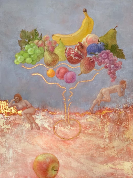 Cette magnifique peinture figurative minimaliste et ronde d'Ana est issue de son dernier corpus d'œuvres.