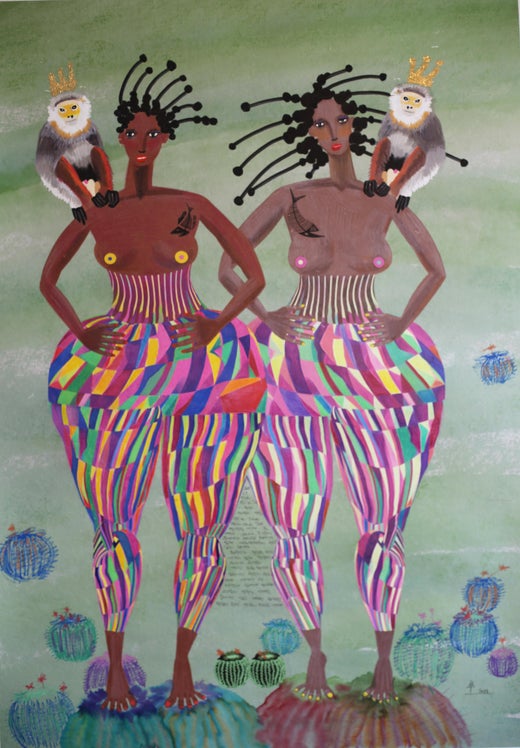 Crowned in Color, vibrante peinture figurative abstraite fantaisiste féminine