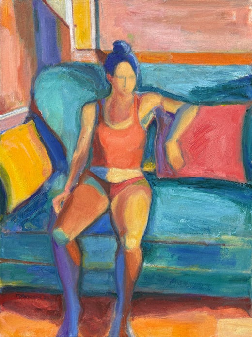 « Woman in Sunlight and Shadow » de M. Petersen, abstrait figuratif coloré
