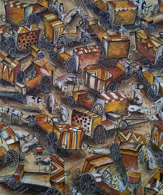 Né en 1989, Mohamed Hussein est originaire du Fayoum. Ses paysages semi-abstraits et ses vues urbaines sont capturés avec une palette cultivée et une méthode de composition qui démentent son jeune âge. Hussein s'inspire des environnements naturels et métropolitains qui l'entourent depuis sa naissance. Le Fayoum se situe confortablement entre ces deux mondes divergents, imprégné des bienfaits de la nature mais menaçant presque d'être enveloppé par la métropole tentaculaire du Caire dont il se trouve à proximité immédiate. Hussein utilise une méthode de texturation qui confère à ses peintures une certaine qualité de profondeur et d'ancienneté, car il travaille dans une multitude de fils et de lignes capillaires qui apparaissent comme des fissures et des plis naturels dans la peinture. L'art de Hussein est principalement basé sur les paysages, et sa méthode de composition confère aux environnements qu'il capture un caractère vivant et organique palpable. Qu'il s'agisse de modestes huttes en terre, de gratte-ciel urbains ou de campements informels et de bidonvilles si répandus dans la région du Caire, il leur confère un attrait rustique et embelli. L'une des principales caractéristiques de la peinture de Hussein est qu'il parvient, avec une palette et une composition discrètes mais cultivées, à transformer ce qui serait autrement banal ou peu attrayant en quelque chose d'esthétiquement plaisant, d'une manière qui transfixie notre attention. La palette de Sage est choisie et appliquée avec goût, car elle est principalement conçue dans des tons de terre atténués : ocres bruns, jaunes brûlés et vifs, marrons rouillés et verts sauge, pour n'en citer que quelques-uns. Ils se combinent pour créer des scènes qui semblent aussi abstraites que racontables et réalistes dans leur composition. La carrière artistique florissante de M. Hussein l'a vu participer à une poignée d'expositions artistiques locales, notamment au Salon de la jeunesse, qui a eu lieu à trois reprises en 2020, 2022 et 2023, ainsi qu'au Festival de la jeunesse arabe, qui a eu lieu pendant plusieurs années consécutives, à savoir la deuxième, la troisième et la quatrième édition. Il a également reçu une bourse d'études complète du ministère de la culture bien qu'il n'ait pas suivi de formation artistique formelle, ce qui témoigne de son potentiel louable et de la promesse de son voyage continu dans l'art.