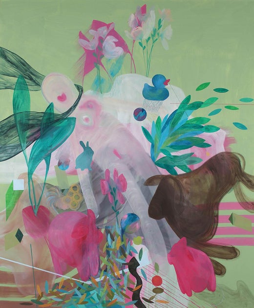Jardins II par Zoran Šimunović - Peinture à grande échelle, rose, couleurs vives