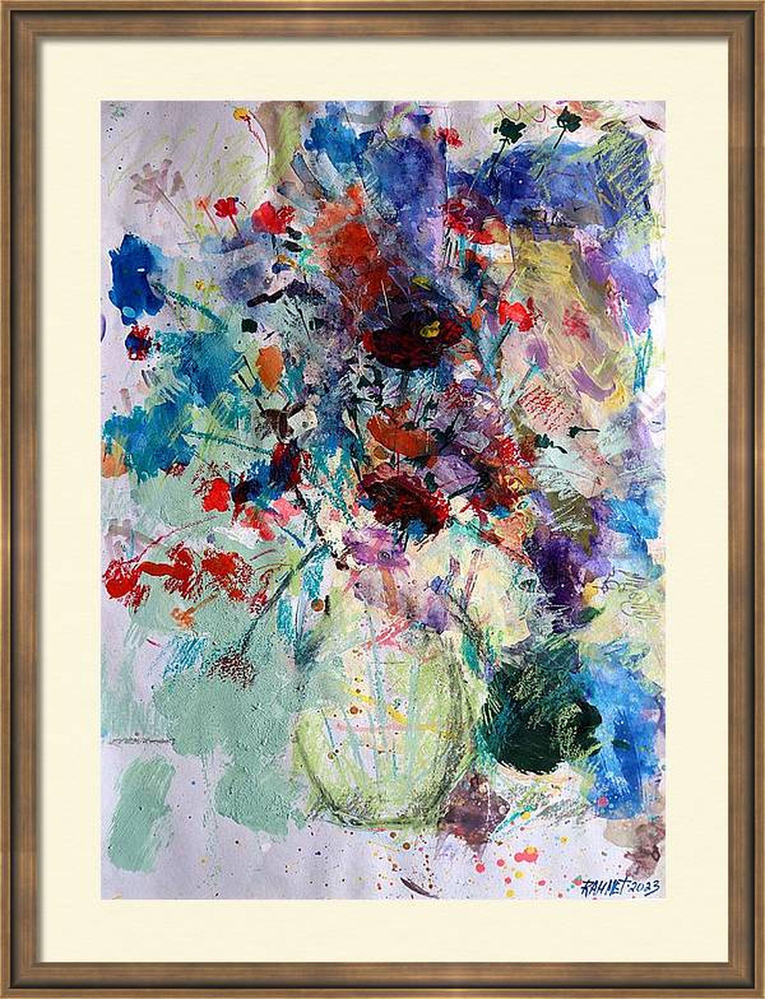 Cette œuvre d'art moderne, colorée et expressive "La joie des fleurs d'été" est pleine d'expressionnisme et de couleurs vives où j'ai pu vivre pleinement le thème des fruits d'été. ...