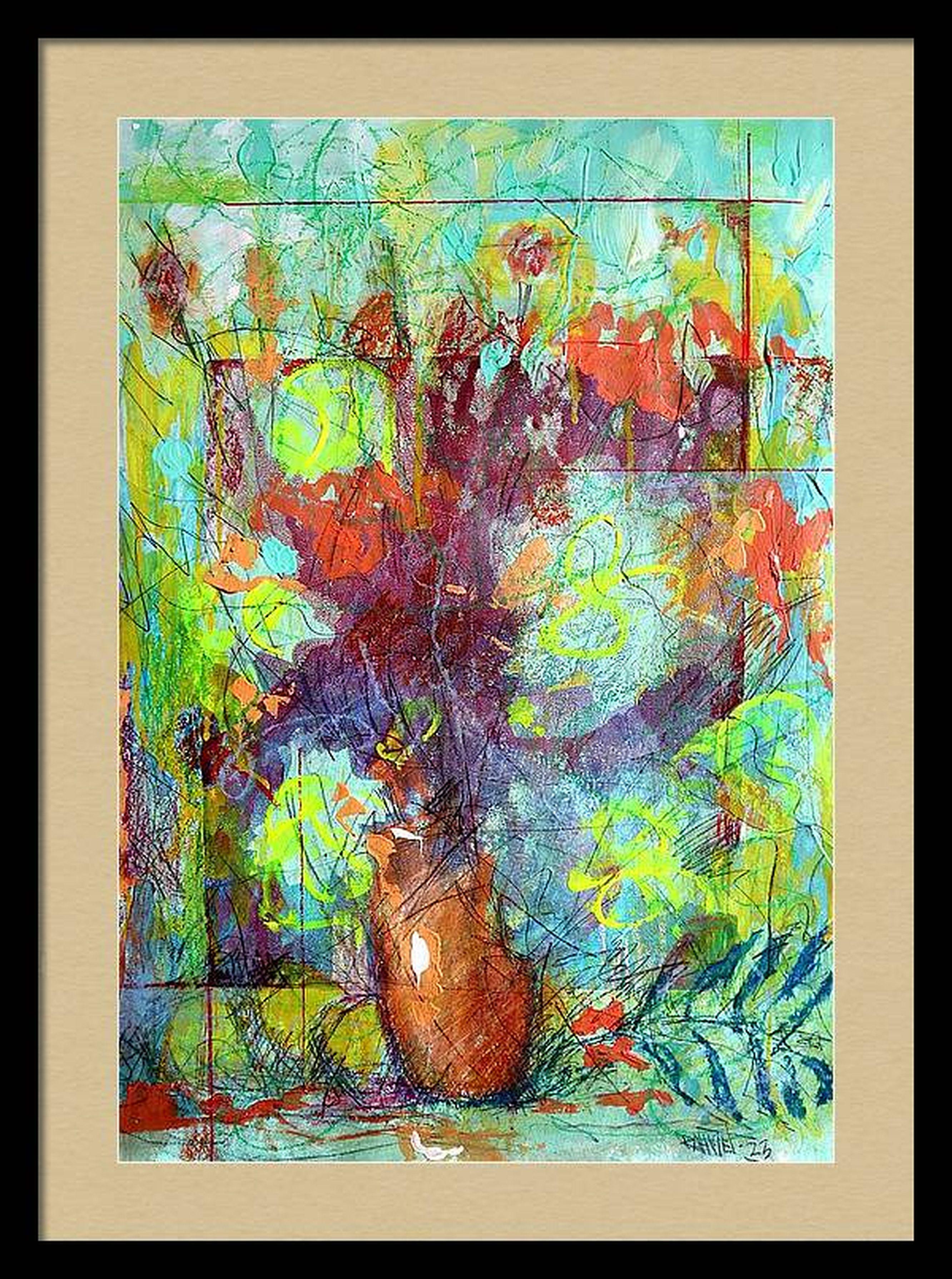 Nature morte abstraite. semi-abstraite, fleurs horizontales, intérieur, acrylique