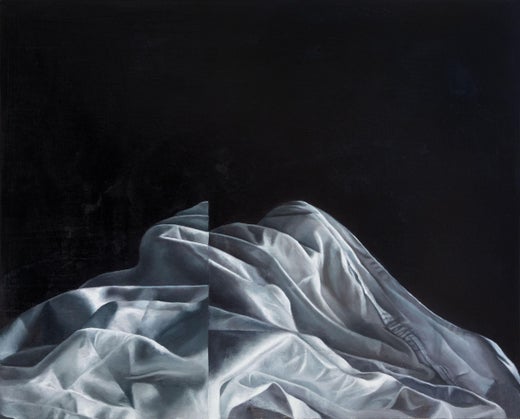 Stephanie Serpick est une artiste visuelle qui travaille principalement comme peintre. Elle a obtenu son MFA à l'université de Chicago et son BFA à l'université de Carnegie Mellon. Son travail a fait l'objet de diverses expositions aux États-Unis et à l'étranger. Née à Baltimore, dans le Maryland, elle vit et travaille actuellement à New York. L'œuvre aborde les thèmes de l'isolement et du deuil, qui ont été amplifiés pendant la pandémie. Notre isolement forcé et les défis qu'il a posés à notre santé physique et mentale constituent une expérience commune à partir de laquelle il est possible d'envisager le deuil et une éventuelle guérison. Dans les travaux les plus récents, les images de fenêtres, y compris les rideaux soufflants ou transparents, donnent le sentiment d'être coupé du monde extérieur. Et comme la literie dans A New Fall et It's Always Darkest Before Dawn, ces tableaux sont dépourvus de présence humaine et donnent donc l'impression d'être seuls et isolés, reflétant ce que beaucoup ont vécu pendant la pandémie. Les peintures de literie sont représentées par des lits défaits et des draps jetés sur des fonds intentionnellement vierges et quelque peu rugueux. Le lit vide et les fenêtres représentent tous deux un lieu de deuil, de solitude et de guérison. En tant que tel, le travail parle de notre sentiment commun de traumatisme, avec la compréhension que, bien que nous souffrions tous de manière individuelle, la souffrance est universelle. Les sources de ce travail sont des photographies trouvées, et la taille intime des peintures fait référence à la nature intime du sujet. Les fonds des tableaux sont peints et poncés à plusieurs reprises, afin de créer un cadre et une toile de fond pour l'imagerie qui est plate, mais rugueuse avec le travail et le temps. La literie et les fenêtres sont vues de différents points de vue, mais indiquent toujours une scène de désolation et de désespoir.