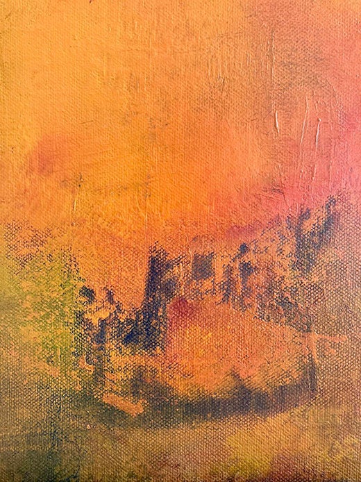 Une peinture de paysage abstraite et douce, avec des touches de paysage fluvial. Une palette chaleureuse, dédiée à l'ascension du ciel vers la terre (coucher de soleil et aube) et à ...
