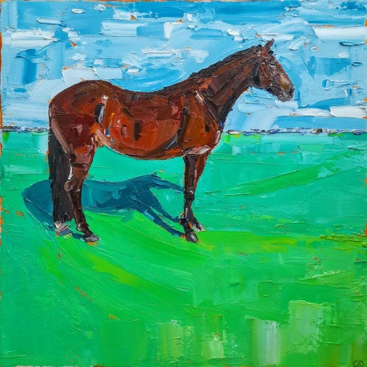 Georgie a grandi près de la côte, dans la région rurale de l'ouest du Pays de Galles, entourée de collines et de terres agricoles, ce qui a sans doute influencé sa pratique actuelle. Elle s'est installée à Cheltenham pour étudier les beaux-arts. Le travail est partagé entre la peinture en plein air à travers le pays, capturant des éléments du paysage environnant, et le travail en studio. "Je travaille assez rapidement et mes marques sont spontanées et impulsives, j'embrasse les accidents heureux et j'apprécie la vie qui peut être vue dans un tableau lorsque l'artiste travaille instinctivement. L'inspiration me vient en explorant la terre et la mer, en recherchant des couleurs et des formes qui me donnent un sentiment d'appartenance. Le littoral m'intéresse particulièrement ; l'élan continu de la mer et la lumière changeante sont une source d'inspiration inépuisable " Georgie a grandi dans l'ouest rural du Pays de Galles, entourée de collines ondulantes et de champs en patchwork, ce qui a sans aucun doute influencé sa pratique artistique actuelle. Ayant déménagé à Cheltenham pour étudier les beaux-arts, elle s'y est installée pour travailler dans son studio à domicile. Inspirée par la campagne britannique, elle explore la beauté du paysage à travers ses peintures à l'huile.