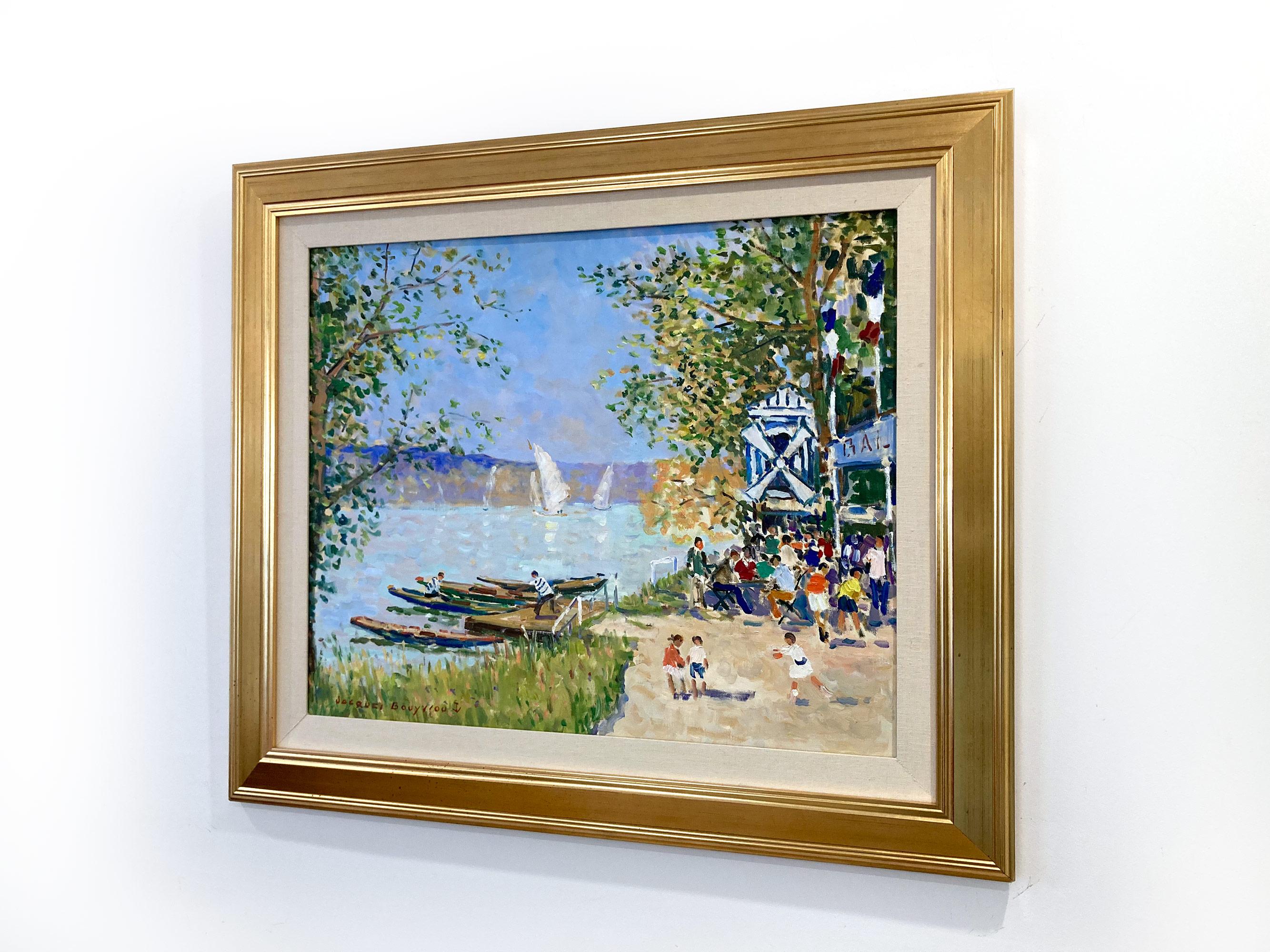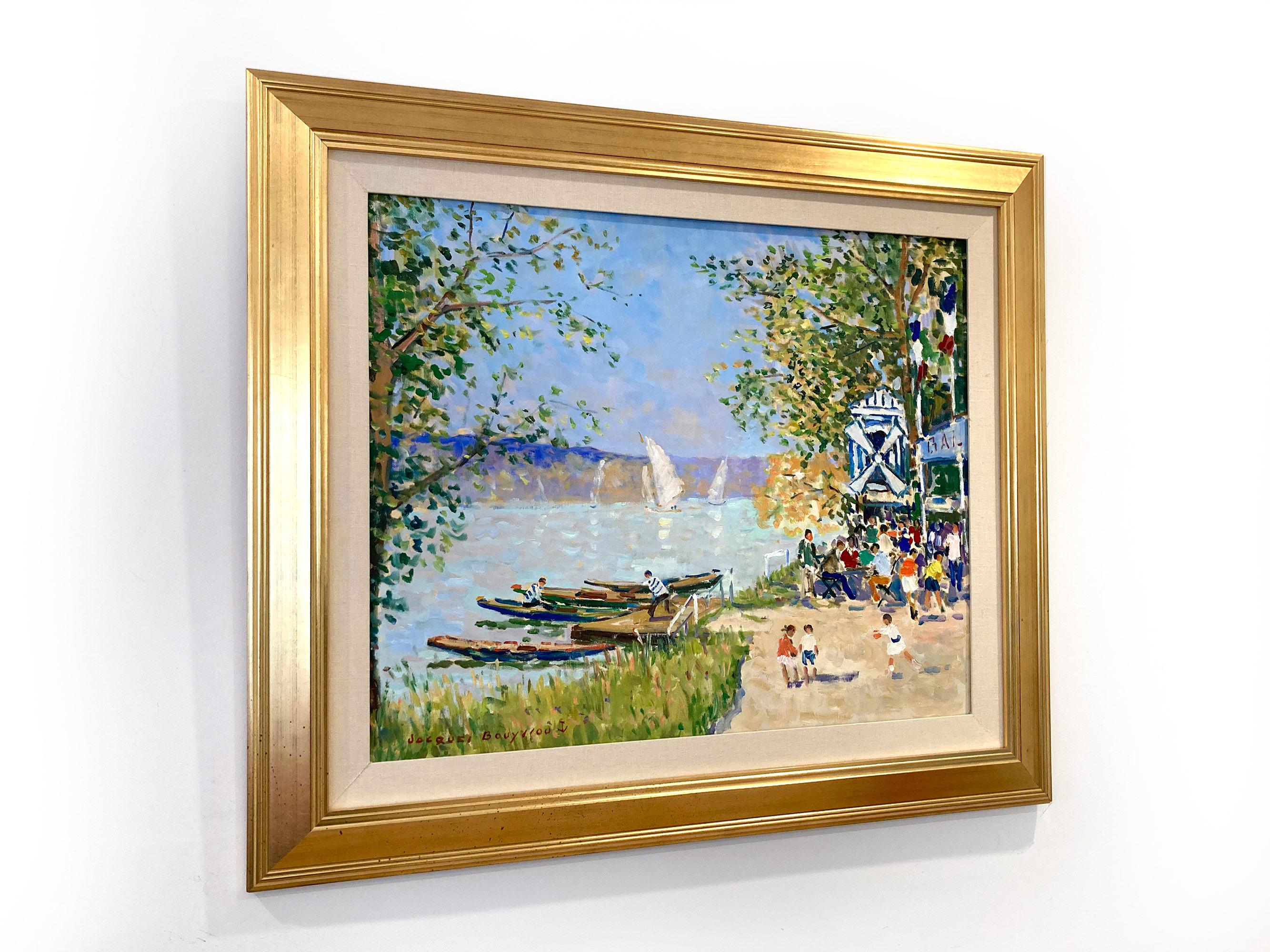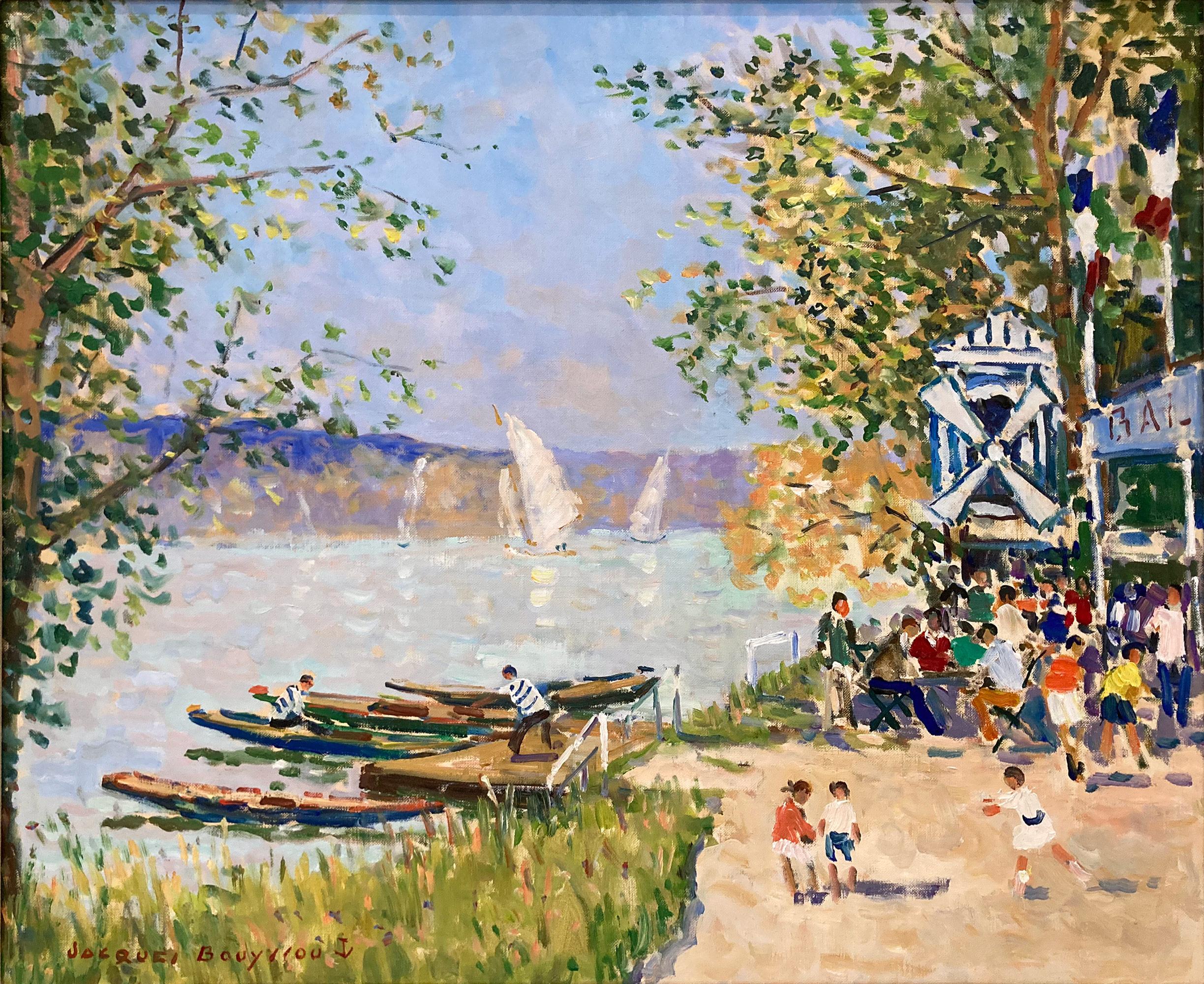 Jacques Bouyssou"Le Dimanche Au Bord De La Marne" Impressionistic Parisian Oil Painting Canvas20th Century