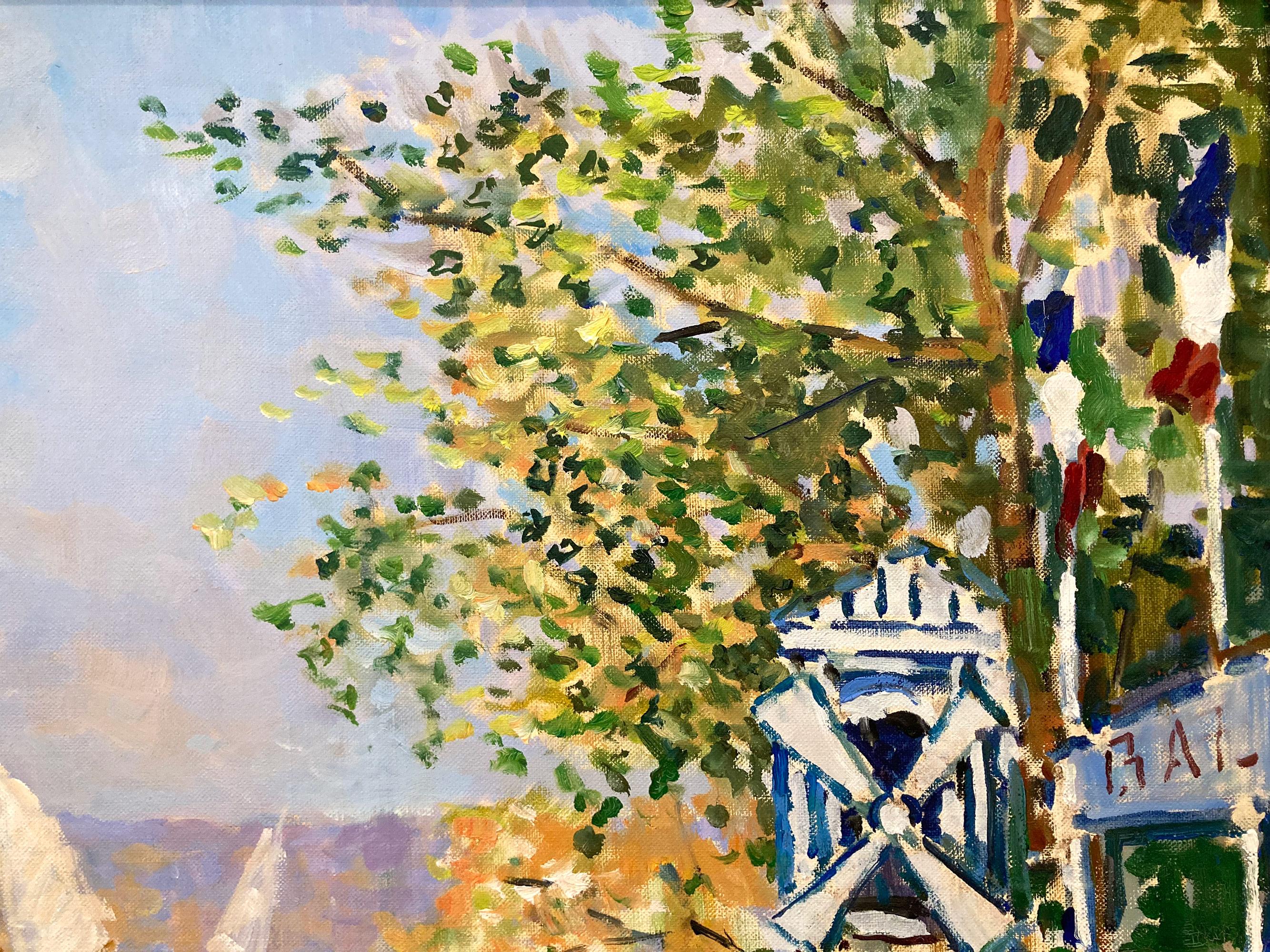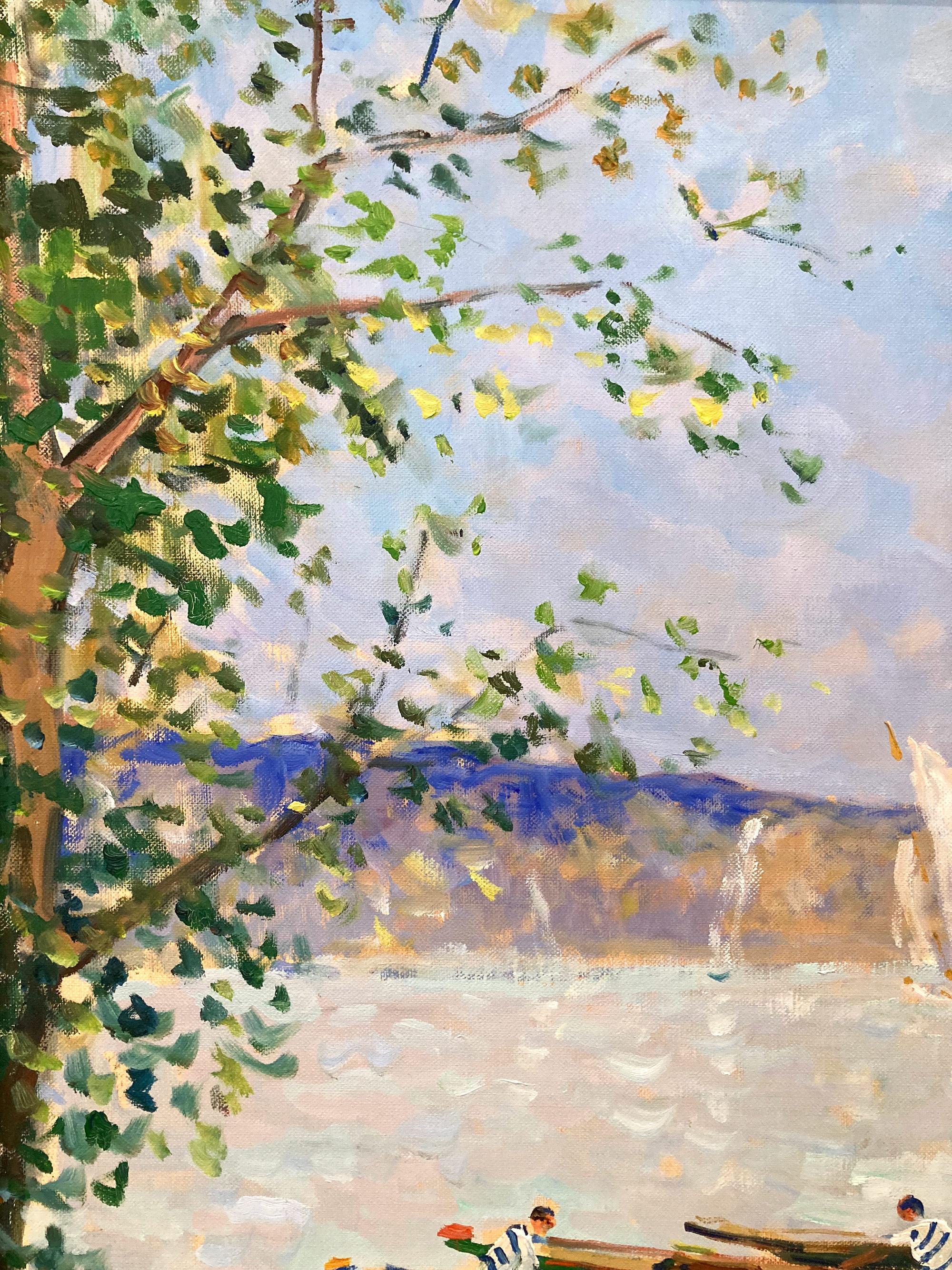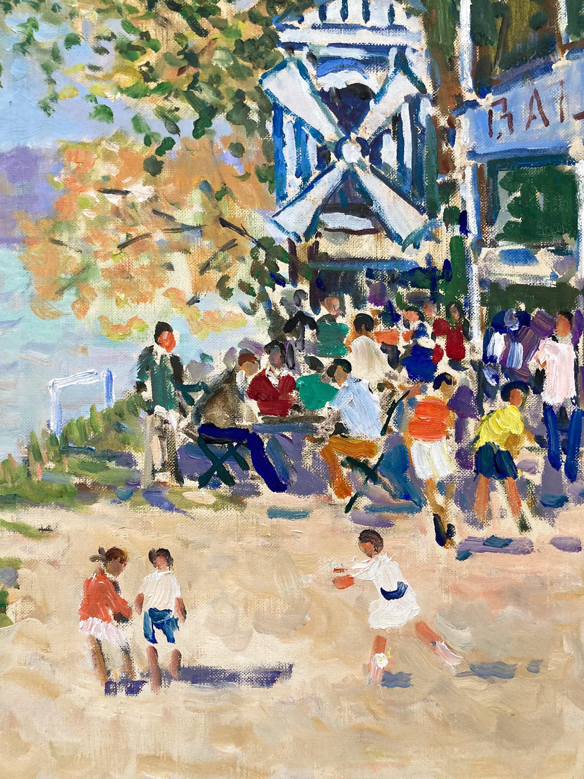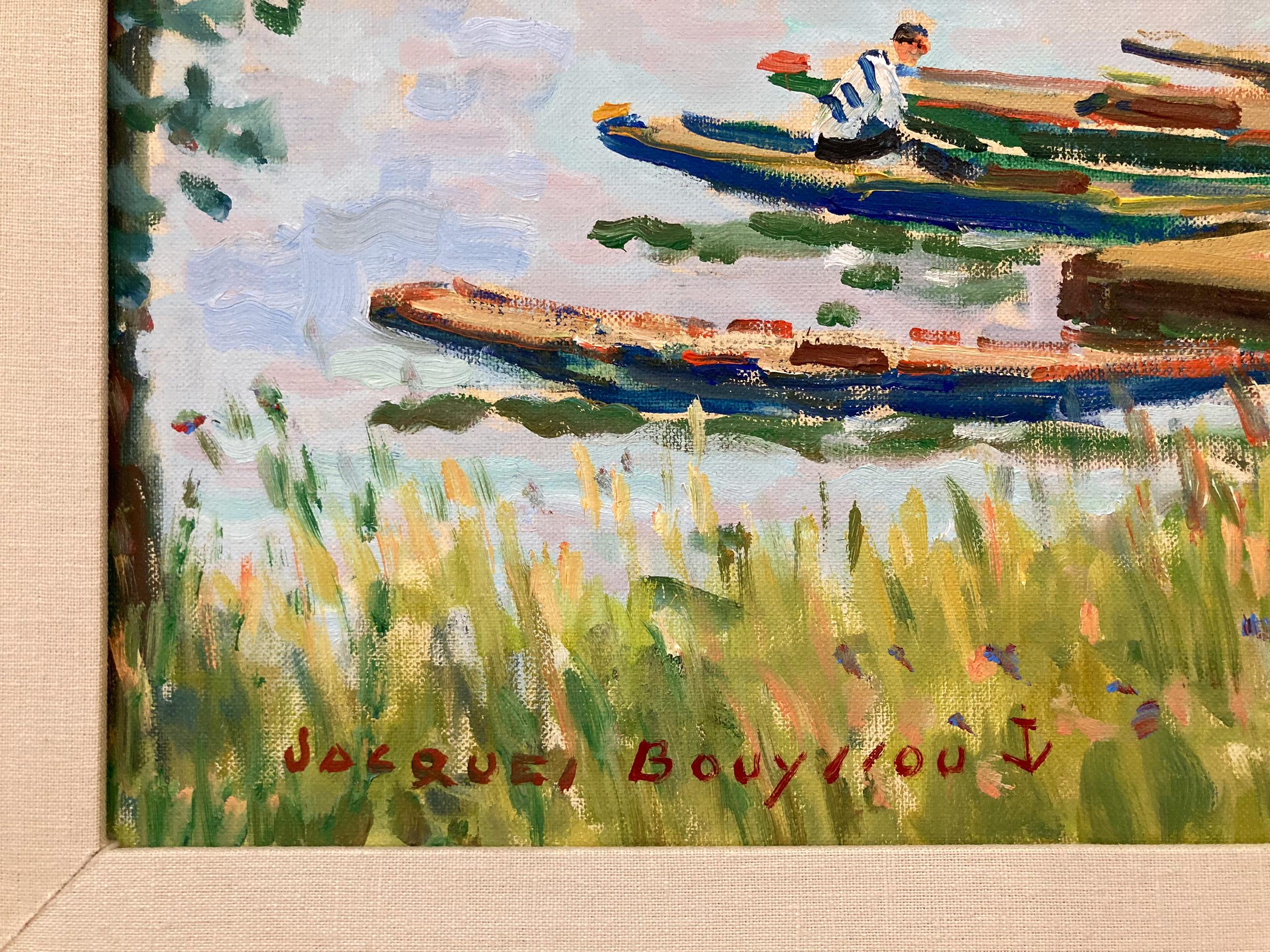 Jacques Bouyssou"Le Dimanche Au Bord De La Marne" Impressionistic Parisian Oil Painting Canvas20th Century