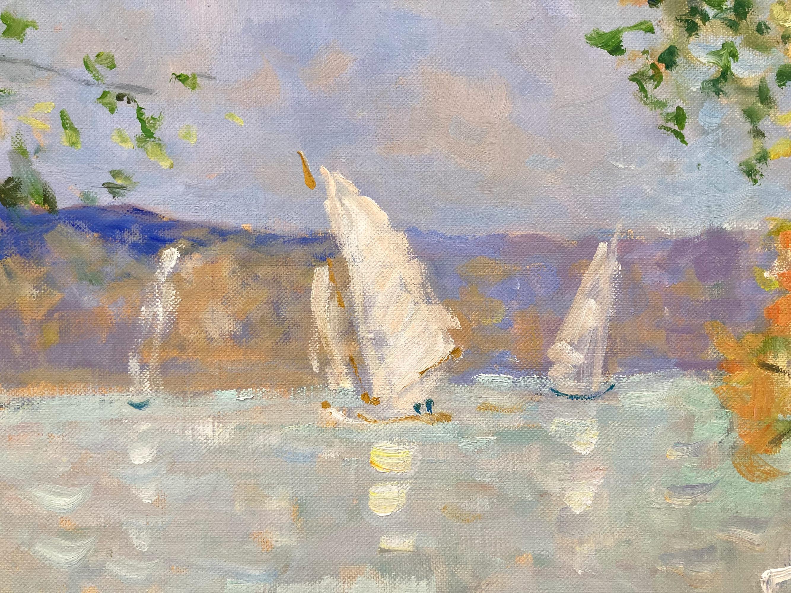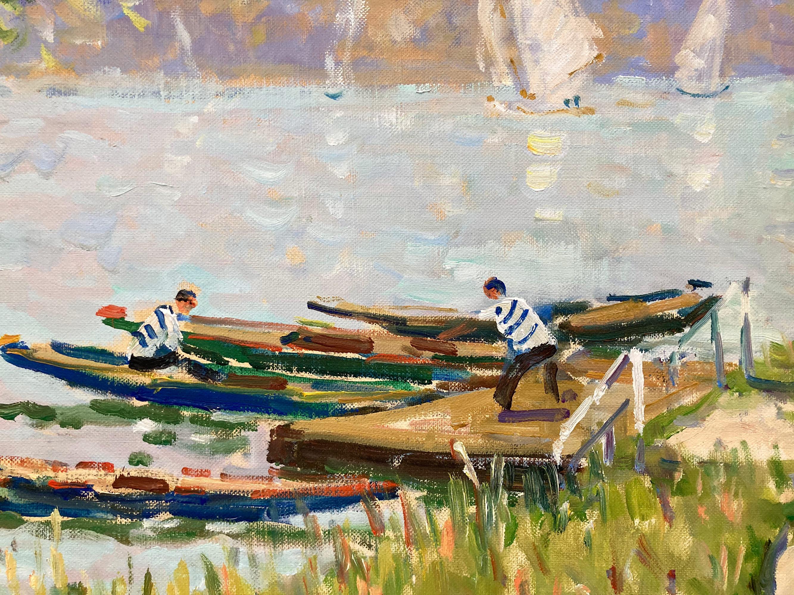 Articles similaires à "Le Dimanche Au Bord De La Marne" Impressionistic Parisian Oil Painting Canvas