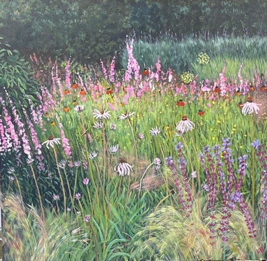 Wirth à Bruton, conçu par Piet Oudolf. Ces environnements alimentent sa fascination pour la croissance naturelle, les textures en couches et le pouvoir tranquille de la couleur et de la lumière. "Je suis attirée par l'émerveillement de la nature qui m'entoure", explique-t-elle. "Je ne m'en lasse pas et j'essaie toujours de capturer l'atmosphère et la splendeur dans mon travail. C'est une source d'inspiration constante". Katie a étudié le graphisme et l'illustration à la Central Saint Martins School of Art and Design, où elle a acquis des bases solides en matière de composition et de narration visuelle. Elle a ensuite obtenu un certificat d'études supérieures en éducation et a passé le début de sa carrière à travailler comme muraliste à Londres, réalisant des œuvres à grande échelle pour des clients privés et commerciaux. Elle a ensuite travaillé en tant qu'artiste indépendante pour un cabinet de conseil en art, créant des pièces commandées qui font aujourd'hui partie de collections dans le monde entier. Son travail est connu pour la qualité tactile de sa surface, son énergie vibrante et sa capacité à exprimer le poids émotionnel subtil des paysages et des formes naturelles. Aujourd'hui, Katie continue d'explorer l'intersection entre l'environnement externe et la réponse interne, peignant souvent de manière intuitive, laissant le rythme du coup de pinceau faire écho au mouvement du vent dans l'herbe, à la lumière changeante d'un littoral ou à la douce complexité de pétales superposés. Qu'il s'agisse de paysages ou d'œuvres botaniques, ses peintures invitent le spectateur à faire une pause, à observer et à se reconnecter avec la beauté tranquille du monde naturel.