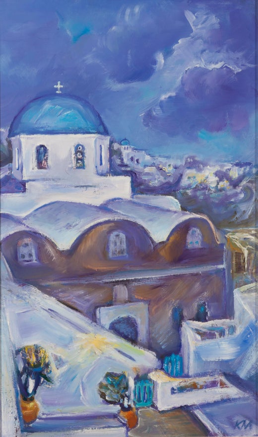 "Santorini, live in Ia " est une peinture moderniste du Maestro Krassimira Mihaylova.