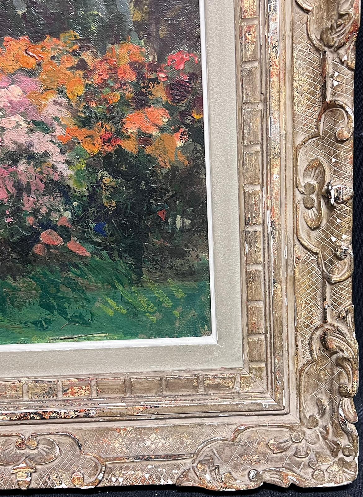 Jardin de fleurs impressionniste français coloré des années 1950 signé Impressionniste