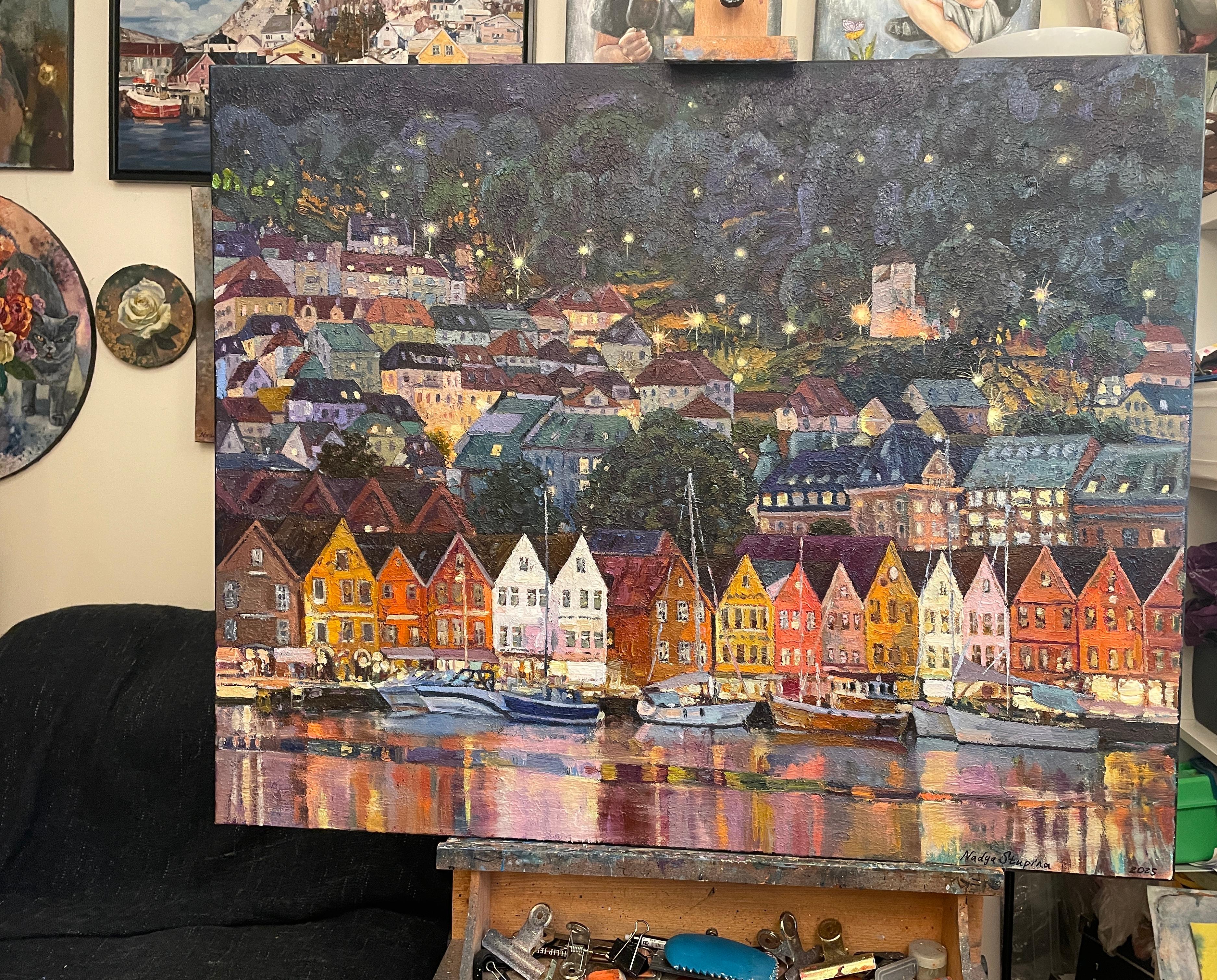 "Bergen. Le silence du matin de Noël" Paysage original. Impasto.