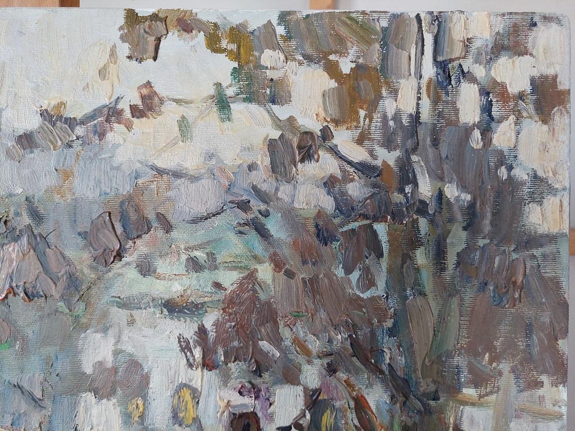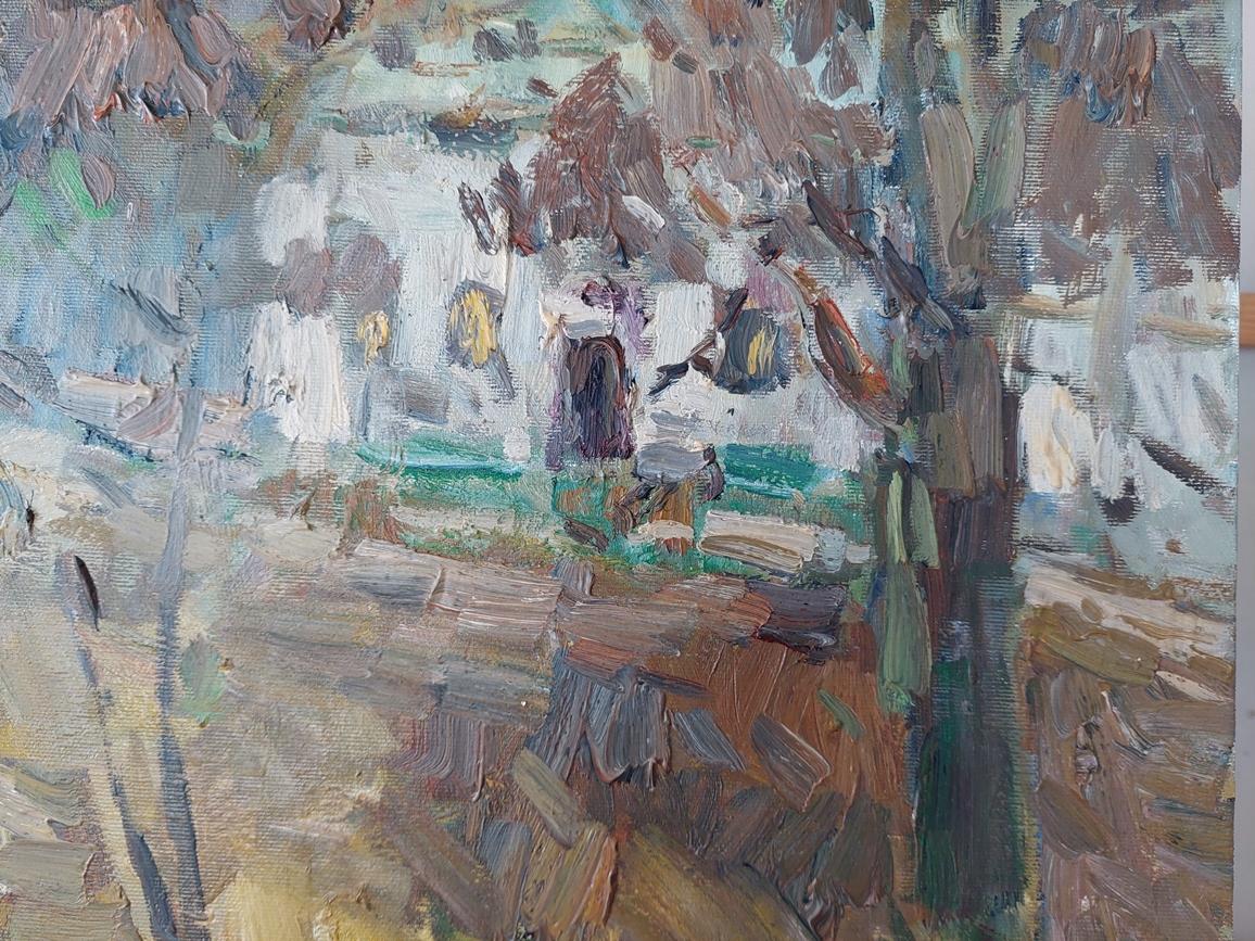 In the golden autumn of 2007, Alexander Khrapachov turned his creative gaze to one of the oldest spiritual centers of Ukraine – the Vydubychi Monastery in Kyiv. This canvas is not just an architectural landscape, but a deep philosophical reflection on eternity, faith, and the unbreakable beauty of the spirit.