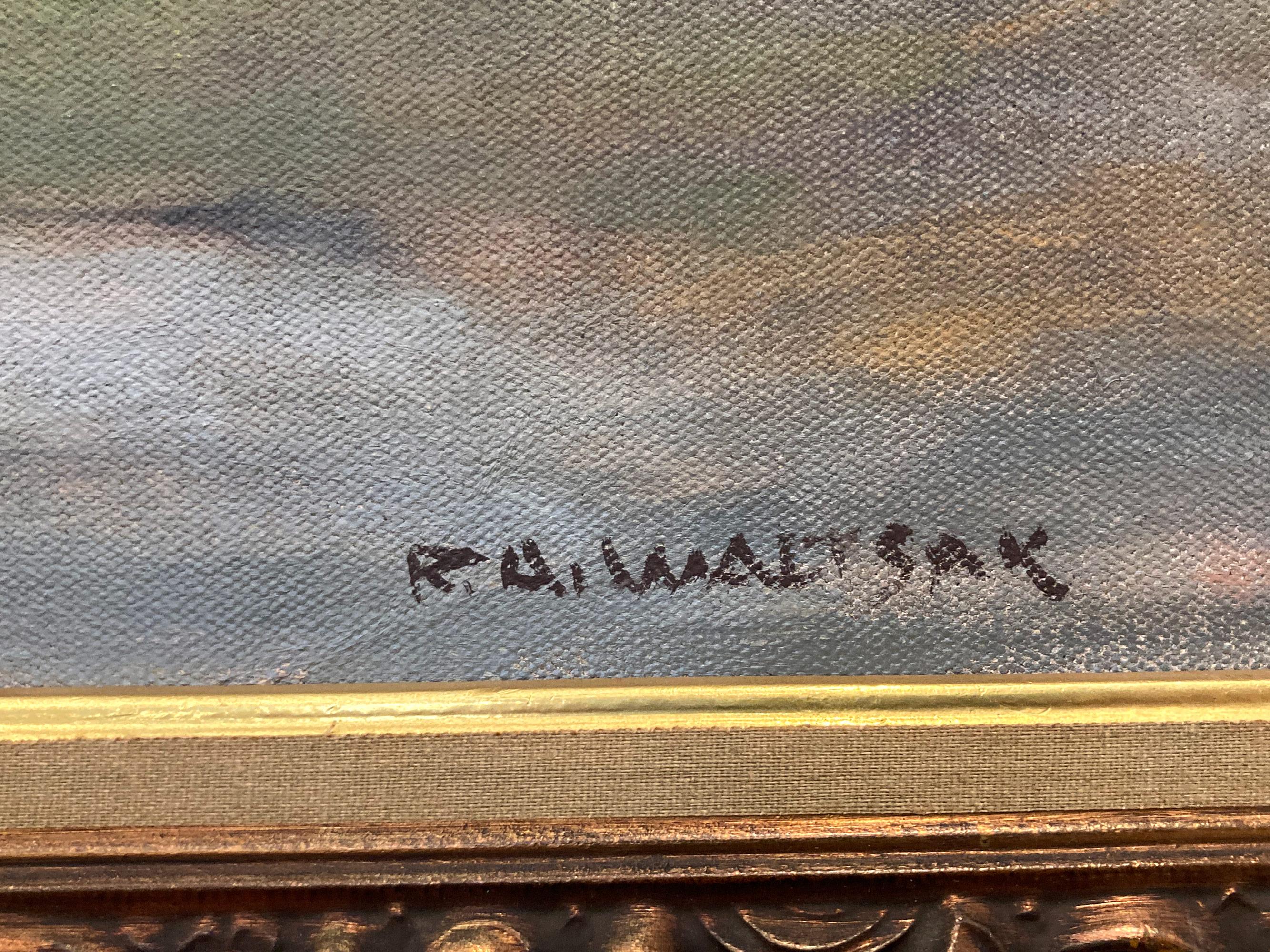 Robert Waltsak"Country Side Sunset Near the Lake" Impressionist Oil Painting on Canvas Framed21st Century