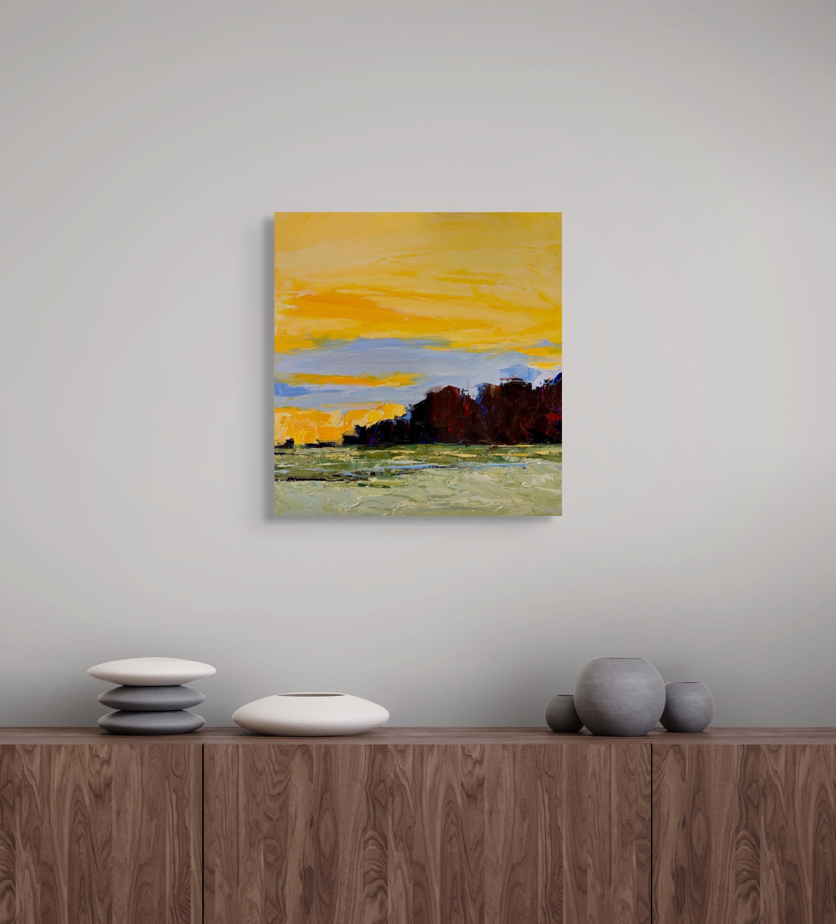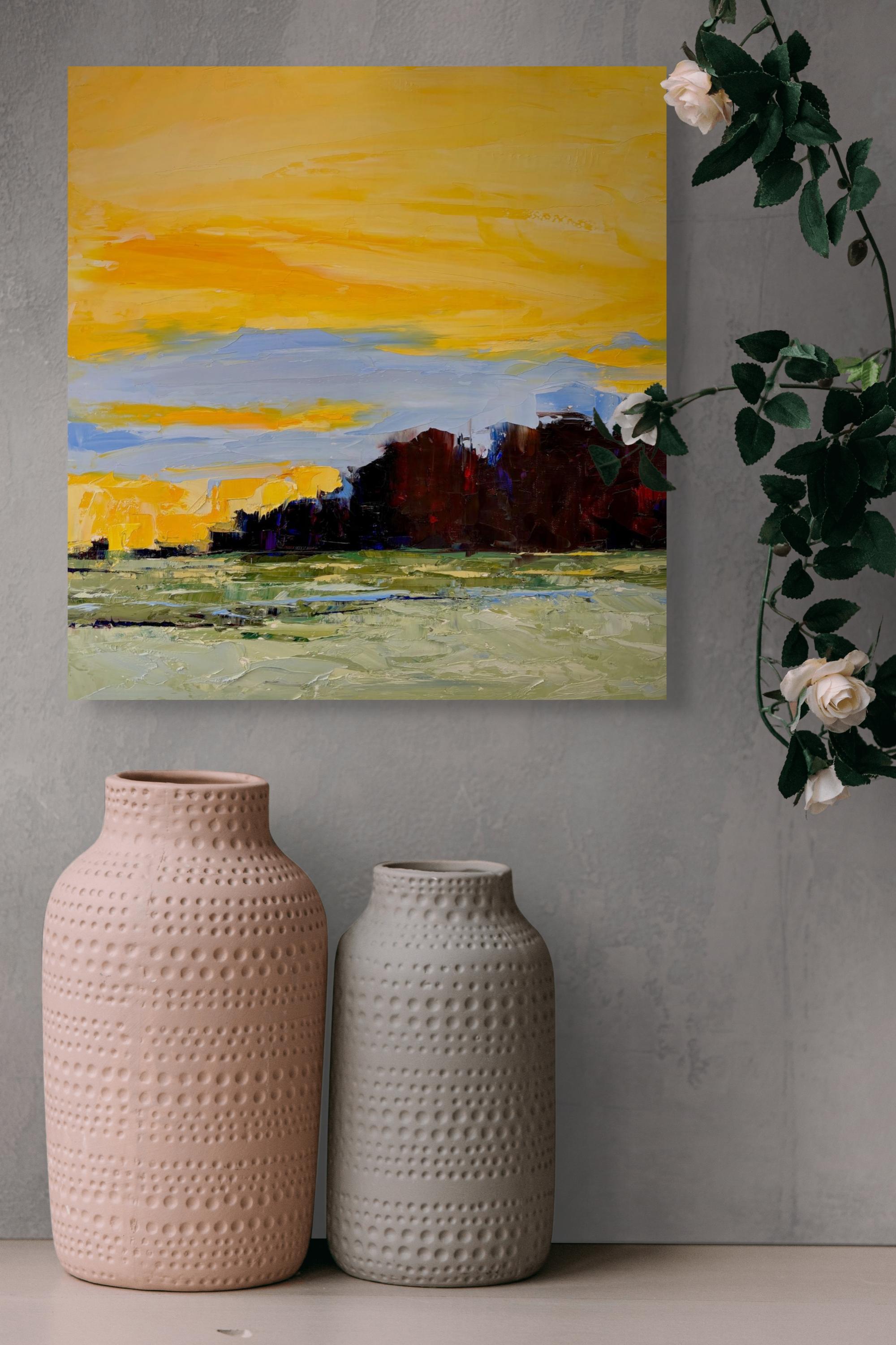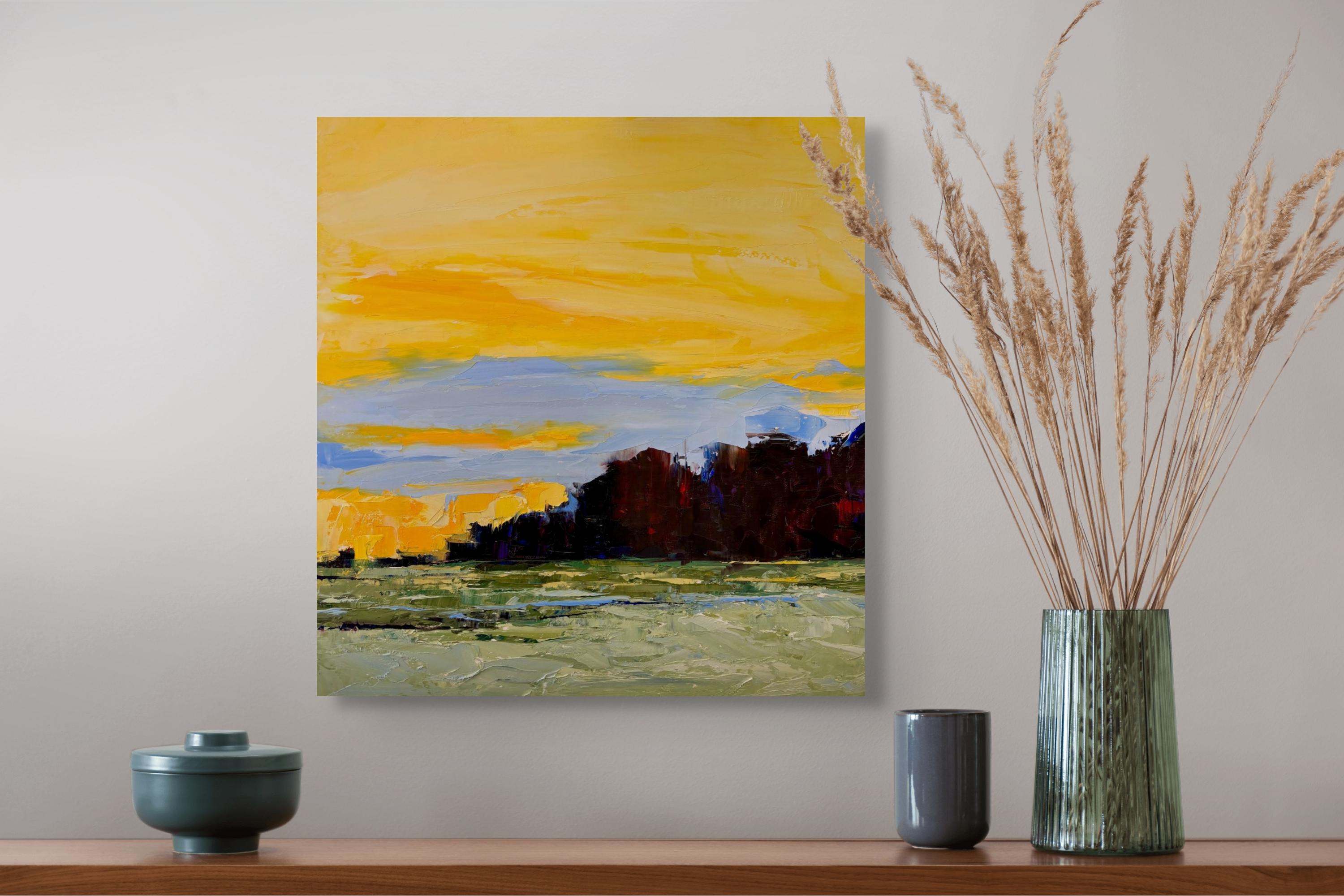 Evening Glow, peinture originale de paysage impressionniste abstrait et contemporain