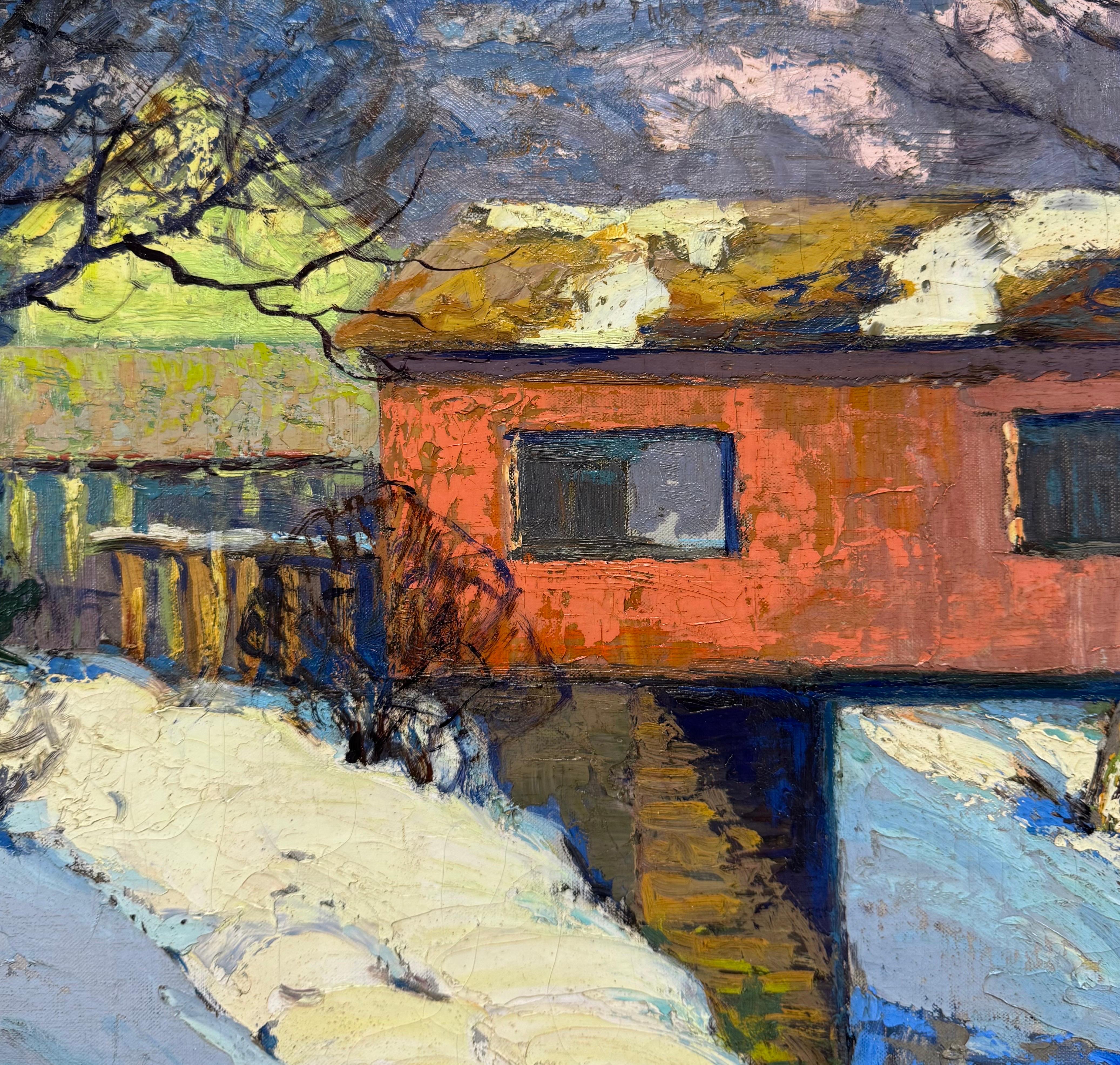 Emile Albert Gruppe, Printemps 1896-1978, peinture de neige sur pont couvert