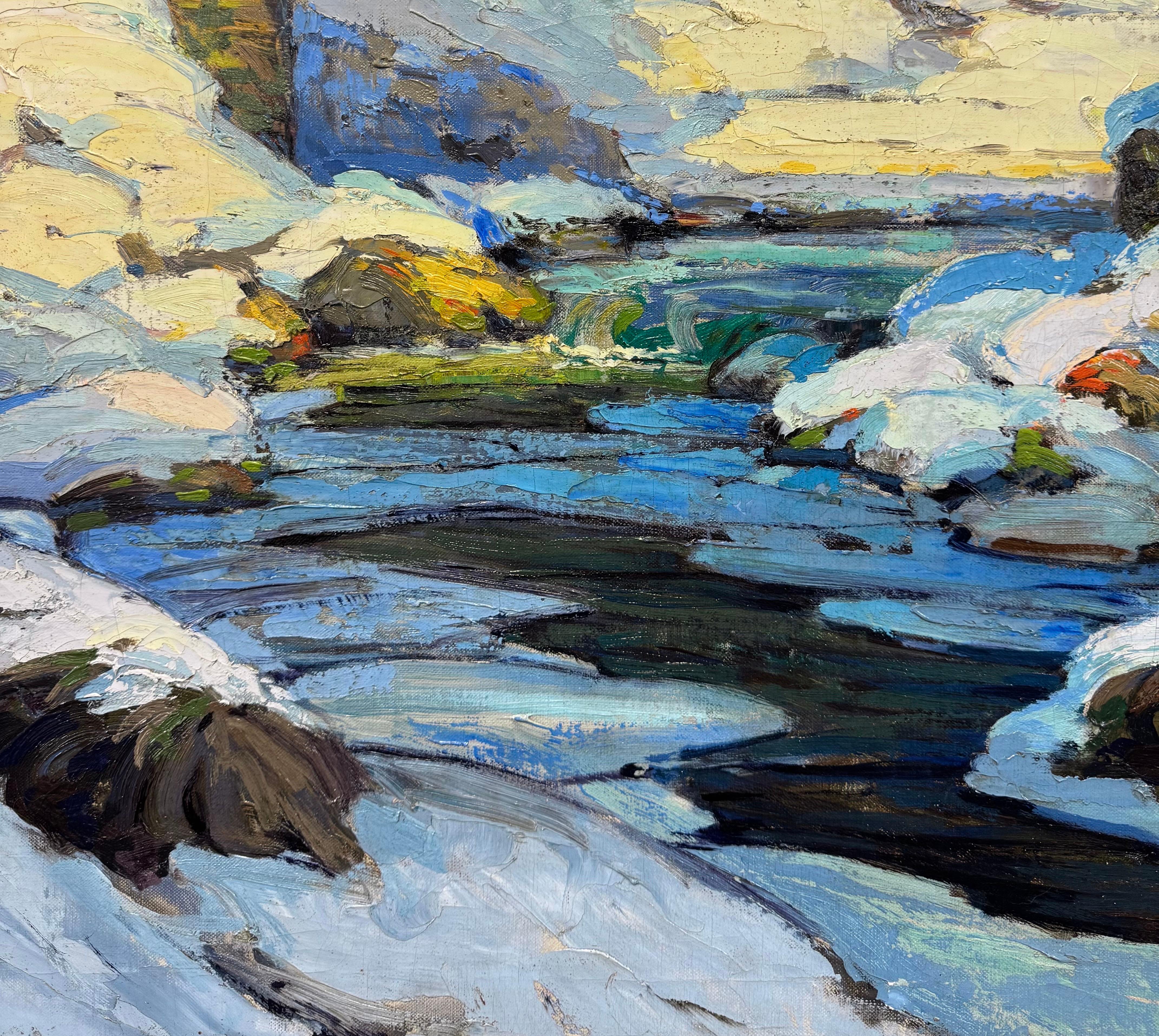 Un autre grand tableau délicieux du maître post-impressionniste Emile Albert Gruppe. Le paysage vous emmène sur une route enneigée, le long d'un ruisseau glacé et frais, à travers un...