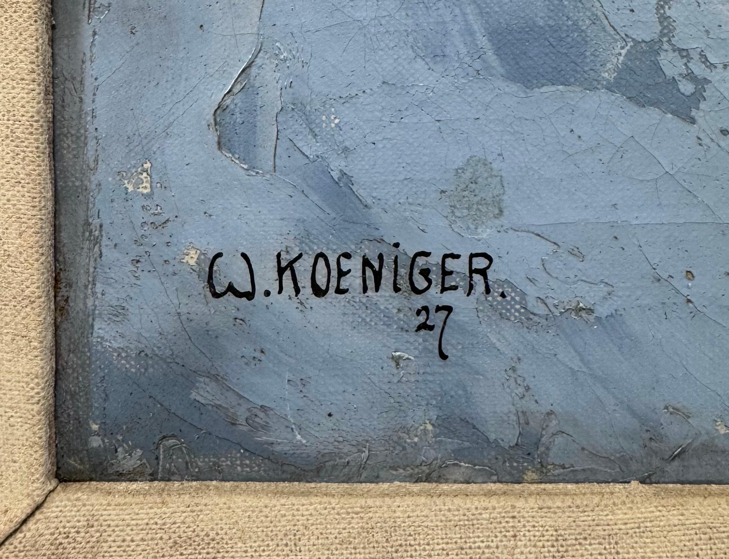 Ses activités à Woodstock (où il est mort en 1943) ne sont pas bien connues ; apparemment, il n'était pas impliqué dans la colonie d'artistes qui s'y trouvait. Il peignait par larges touches, rendant la lumière brillante du soleil et les harmonies de couleurs éclatantes, les doux dégradés de couleurs dans le ciel, les cours d'eau et les forêts. L'artiste a adapté les ombres bleues et violettes de l'esthétique impressionniste. Peintre de plein air, même en hiver, Koeniger aurait retardé l'achèvement d'une peinture jusqu'à ce que le soleil couchant ajoute la bonne teinte d'orange à la scène. Un historien a déclaré que Koeniger avait une "passion" pour les "scènes d'hiver gelées et enneigées". Son travail était populaire et était parfois utilisé sur les couvertures du Literary Digest. Plus tard dans sa carrière, Koeniger a maintenu des studios à la fois à Woodstock et à New York.