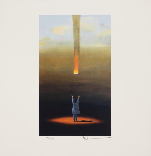 Robert Deyber était un artiste américain qui s'inspirait directement du langage - en particulier des jeux de mots, des euphémismes et des tournures de phrases courantes. Ses œuvres d'art vont de la traduction littérale de ces dictons à des représentations kitsch ; toutes ne cessent de charmer ses spectateurs. Outre son sens de l'humour, l'art de Deyber évoque aussi quelque chose d'autre : la santé de la psyché américaine et la résilience de l'esprit américain. Il considère les maîtres surréalistes René Magritte et Salvador Dali comme des muses et s'identifie également aux peintres de l'Hudson River School du XIXe siècle, Thomas Cole et Frederick Church. L'influence de ce dernier est perceptible dans ses représentations de ciels instables qui servent de toile de fond à nombre de ses scénarios anecdotiques. Décrit par le San Francisco Examiner en 2009 comme un "surréaliste pop", Deyber était connu comme un "raconteur visuel", un conteur d'histoires avec un pinceau, dont l'œil est profondément ancré dans le subconscient. Si de nombreuses peintures de Derive contiennent des éléments dérivés de l'imagerie imprévisible du subconscient, d'autres images s'apparentent davantage aux mondes de l'histoire naturelle alternative imaginés par Alexis Rock ou Walton Ford, tandis que l'interprétation visuelle de la phraséologie de la culture pop s'inspire des traditions du Pop Art. Cependant, le ton indécis entre la sincérité et l'ironie est peut-être ce qui fait de l'œuvre de Robert Deyber une œuvre contemporaine distincte, et de son vocabulaire visuel une œuvre unique. Les admirateurs de Deyber dans le monde entier dépassent les frontières traditionnelles, y compris les collectionneurs privés et d'entreprise à travers les États-Unis ainsi qu'en Europe et en Asie. En particulier, l'industrie du divertissement a fortement soutenu sa vision, notamment les producteurs de films indépendants, les scénaristes de renom et les designers. Tom Petty a été l'un des premiers à collectionner les œuvres d'art de Deyber et lui a demandé de créer l'imagerie de la pochette du dernier album solo de Petty en 2006 - Highway Companion.