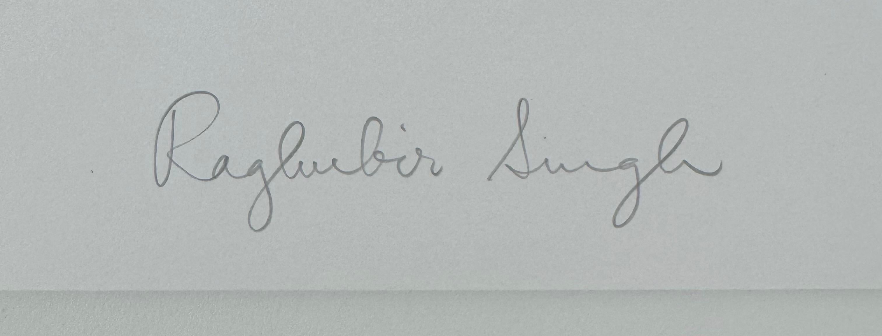 L'œuvre est une impression par transfert de colorant et est signée et inscrite par Singh au crayon au verso. Elle est numérotée 1 de l'édition de 20. L'œuvre porte en outre le cachet de l'artiste au verso. Il est logé dans un cadre argenté derrière un verre résistant aux UV.