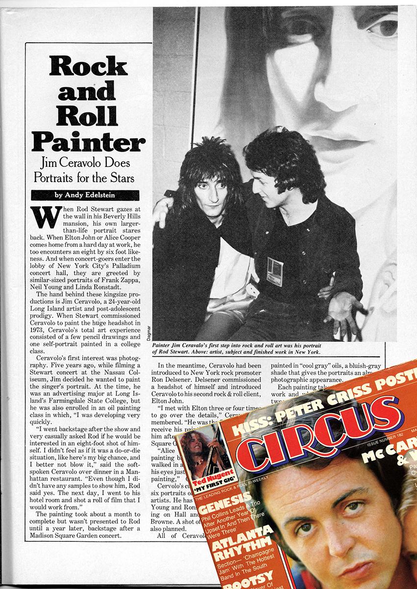L'art de Ceravolo a attiré l'attention du public lorsqu'il a été chargé de créer cinq tableaux de grande taille pour le hall du Palladium Theatre à New York, représentant Jackson Browne, Linda Ronstadt, Frank Zappa, Neil Young et Hall and Oates.