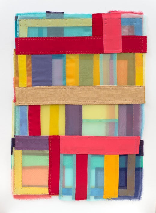 Linda Kamille SchmidtPassage, 2024, vibrantes, semblables à des bijoux, bandes diaphanes de collages de tissus2024