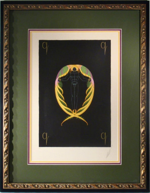 En étendant sa carrière prolifique aux décors de théâtre, aux costumes, aux estampes et aux lithographies, Erté est devenu l'un des artistes les plus célèbres de l'époque. Son style - une combinaison de fioritures inspirées de la nature de Art Nouveau et de lignes géométriques audacieuses - a directement contribué à la naissance de l'Art déco, ce qui lui a valu le surnom de "père de l'Art déco".