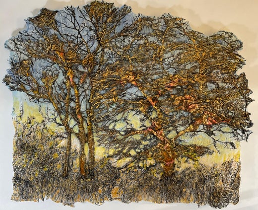 Lesley RichmondSuspension murale Golden Light, Lesley Richmond, 2025, textile en fibres mixtes, 2024