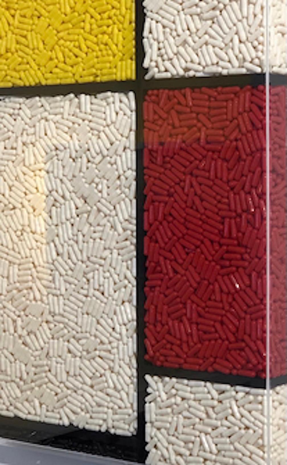 UnknownPop art Mondrian pilules rouge blanc jaune contemporain (accrochage mural ou à plat)2022
