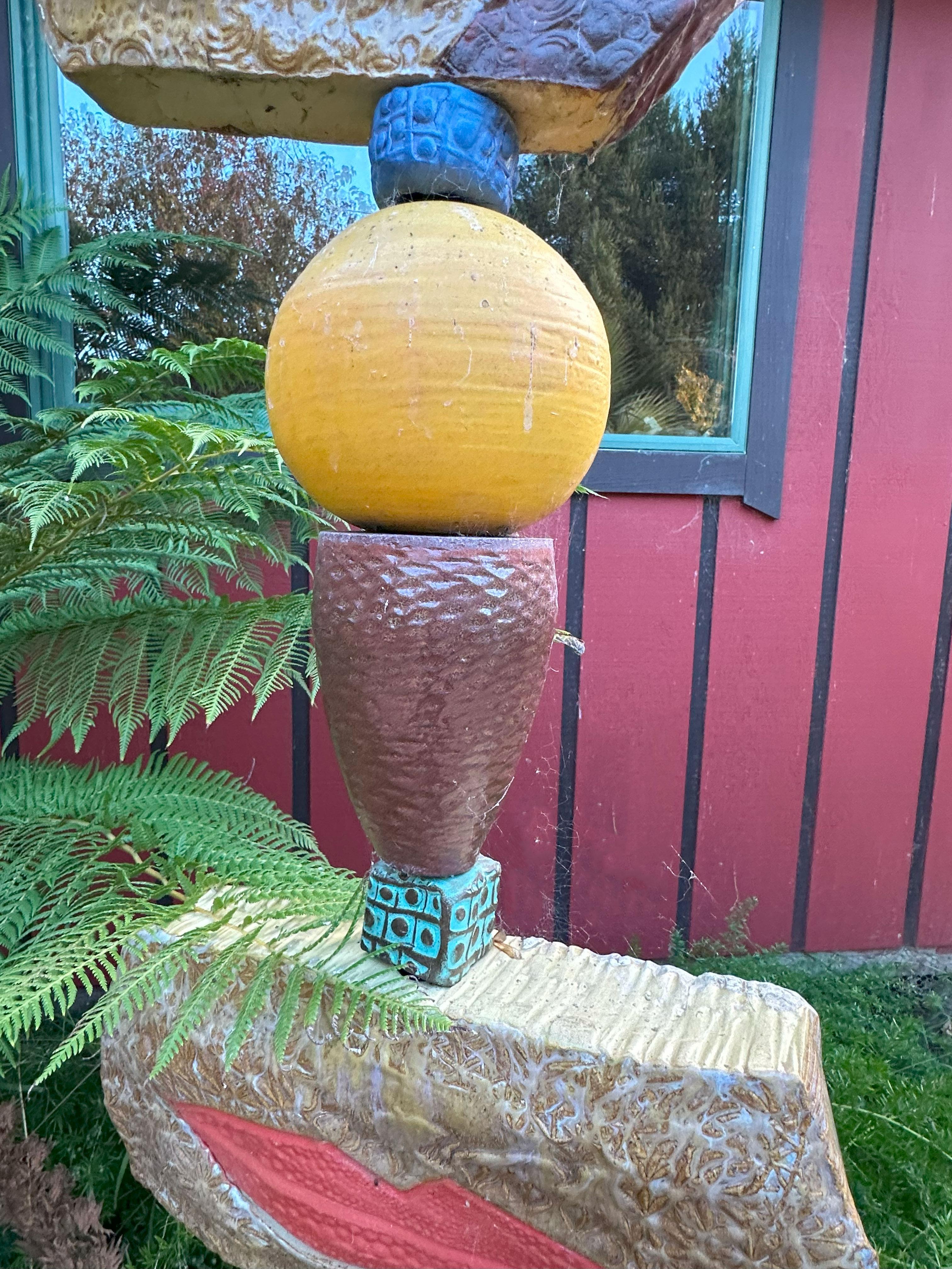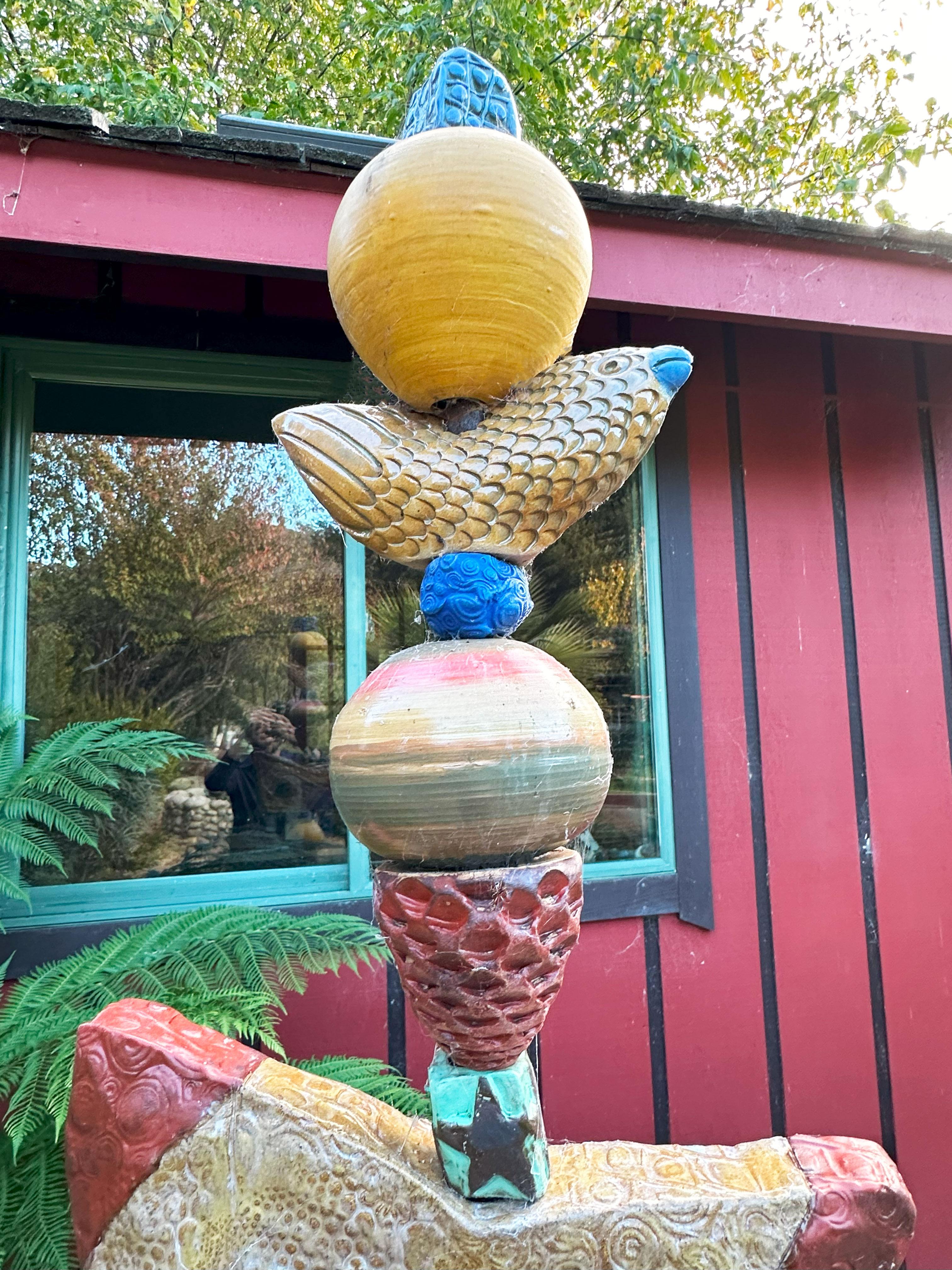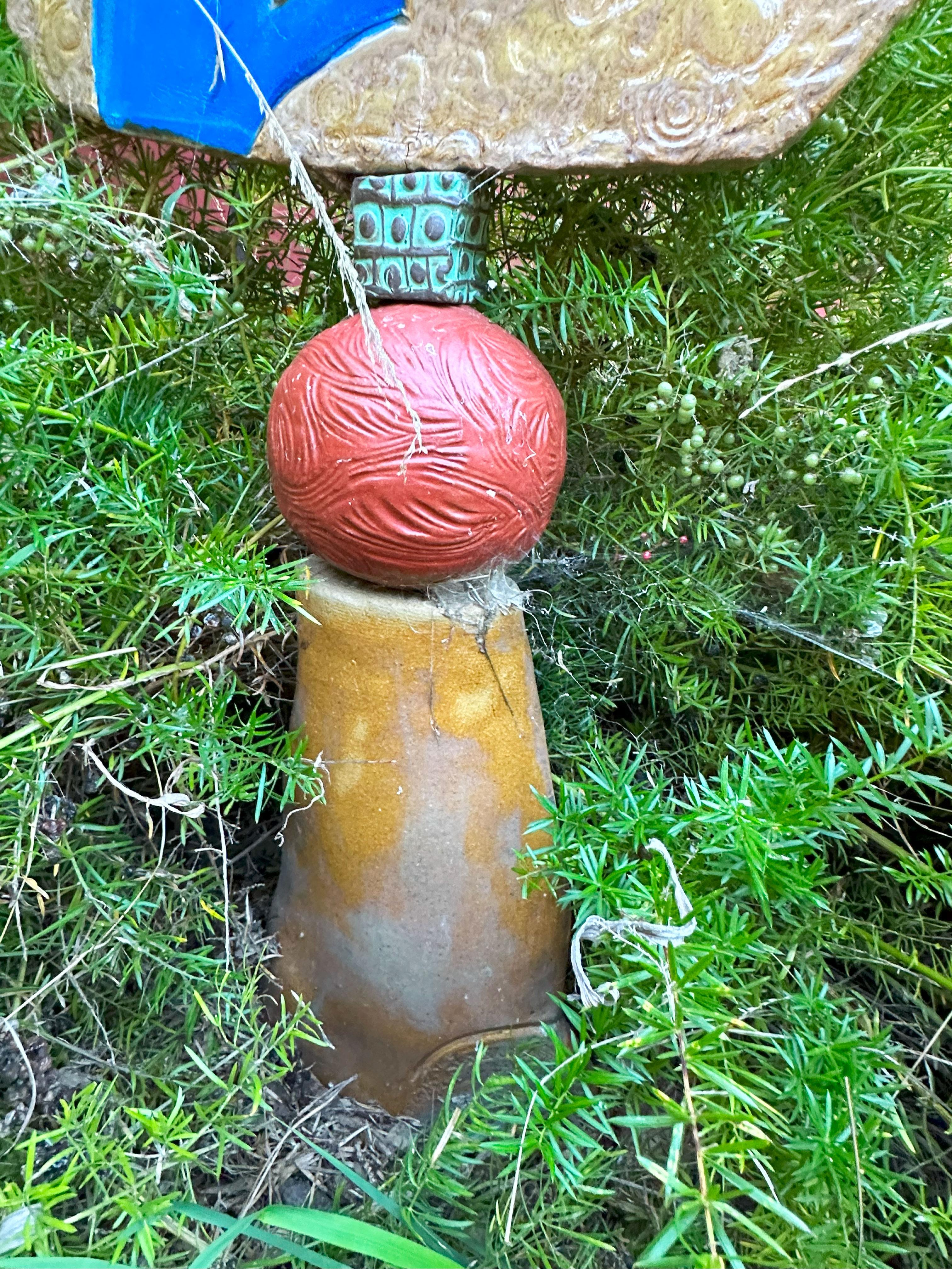 "Mon flux naturel avec l'argile découle de ma première passion artistique ; la poterie dans les années 1960 - 70 à Venice Beach, en Californie. Une carrière de 40 ans en Diptych Fine Arts a fait place l'année dernière à ma passion première : les créations en argile. Cette fois, il s'agit de concevoir des totems en céramique empilés sur des poteaux. Les Garden Totems sont des constructions en argile vernissée, chaque partie sculptée soutenant l'ensemble, créant ainsi une sculpture unique. Chaque totem est une expression unique basée sur mon inspiration du moment, mais le fil de mon style personnel peut être vu dans chacun d'eux. Certaines conceptions de totems commencent par un concept esquissé. - Cependant, j'aime être dans l'instant et me laisser aller à la création spontanée. Faire une partie, puis une autre, sur la base de la première : c'est-à-dire qu'une partie renvoie et donne naissance à une autre jusqu'à ce qu'elle soit complète. Cette spontanéité me permet de rester dans l'instant et de trouver de nouvelles inspirations. Les Garden Totems sont là pour revigorer le jardin ou l'espace intérieur avec un décor ludique et une joie de vivre.