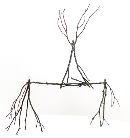 Les sculptures de table en bronze de la série "Tree Man" de Roch Smith sont des pièces ludiques qui mettent en scène des personnages dont les membres humains ont été remplacés par des branches d'arbre. Ce personnage est vêtu pour l'été d'un débardeur et d'un short ; seules ses jambes ont été remplacées par des brindilles minces et texturées. L'artiste canadien est connu pour ses œuvres sculpturales imaginatives qui suscitent souvent la réflexion. L'idée de cette série est née du souvenir qu'avait l'artiste d'une image naturelle fascinante - des branches d'arbres gisant sur le sol de la forêt. S. Smith a collecté ces branches particulières sur le rivage près de la plage de Cavendish, sur l'Île-du-Prince-Édouard, une plage canadienne célèbre et populaire.