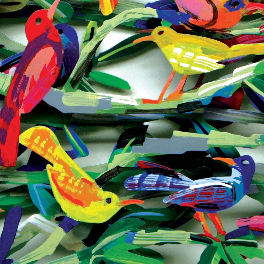 David Gerstein« Oiseaux exotiques », sculpture murale en métal peinte à la main en 3D