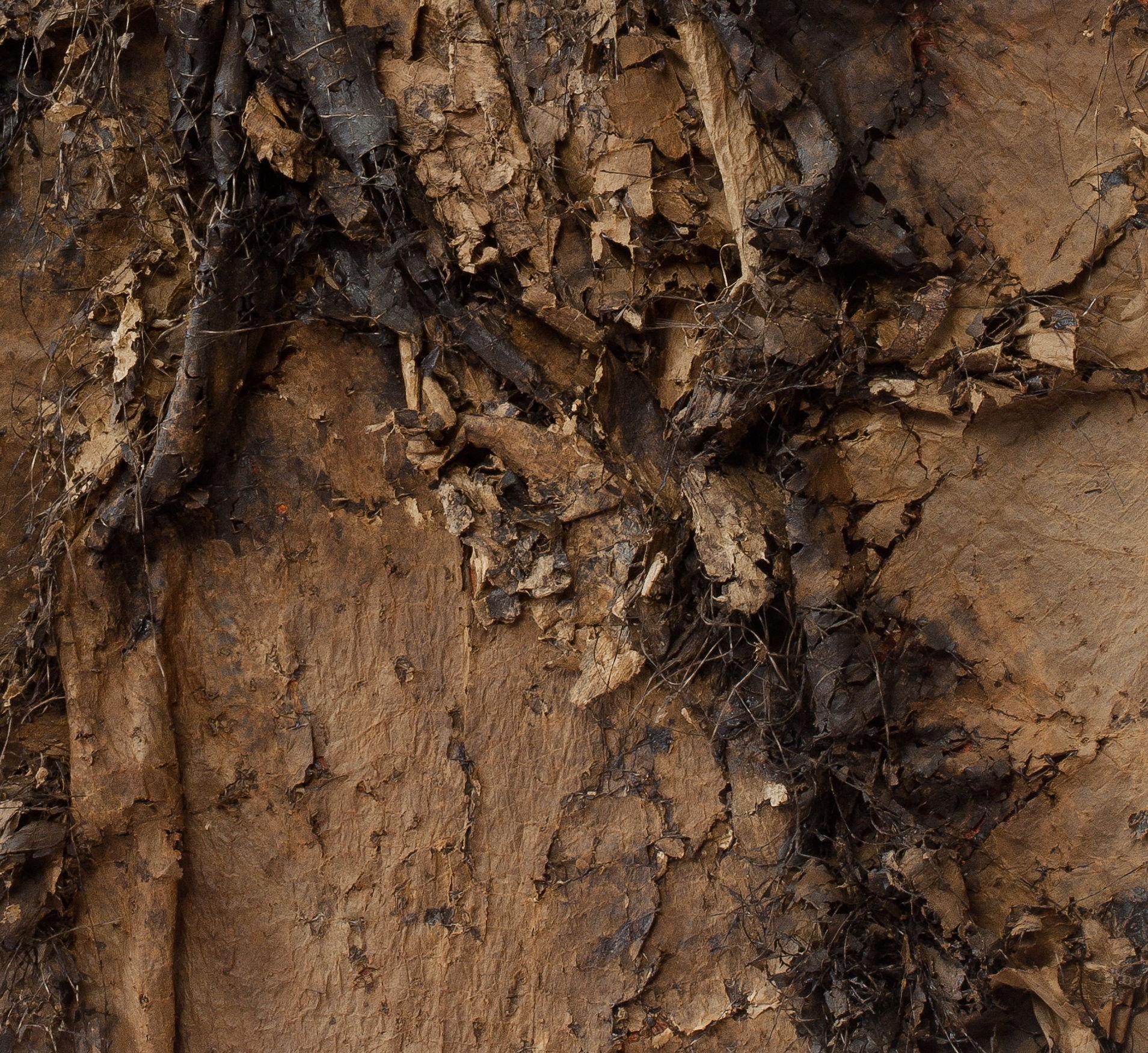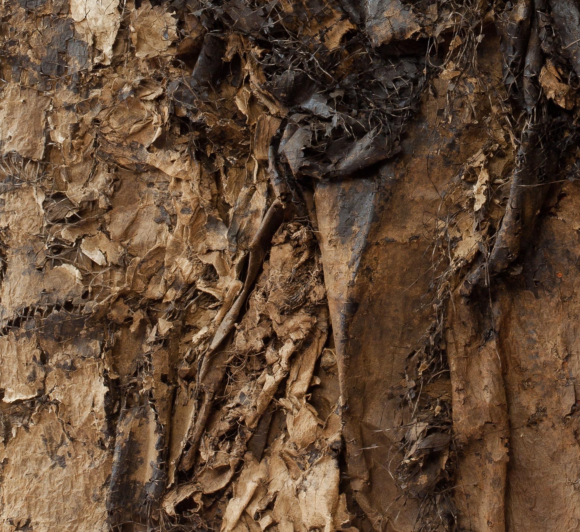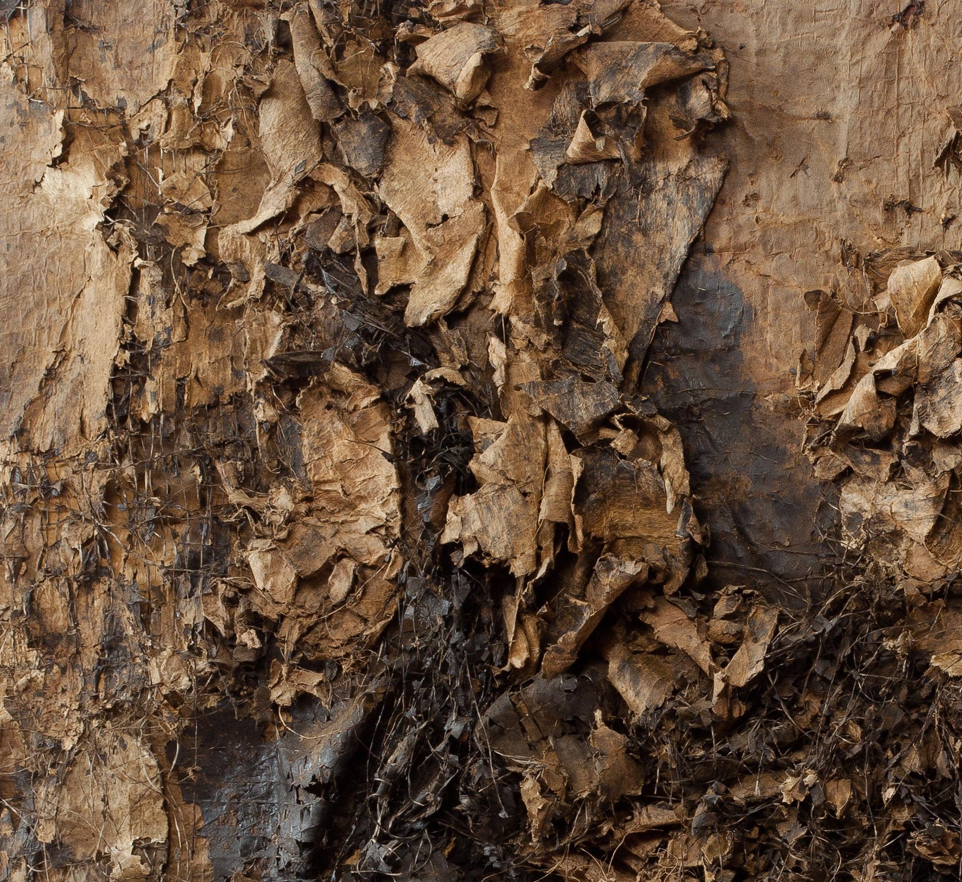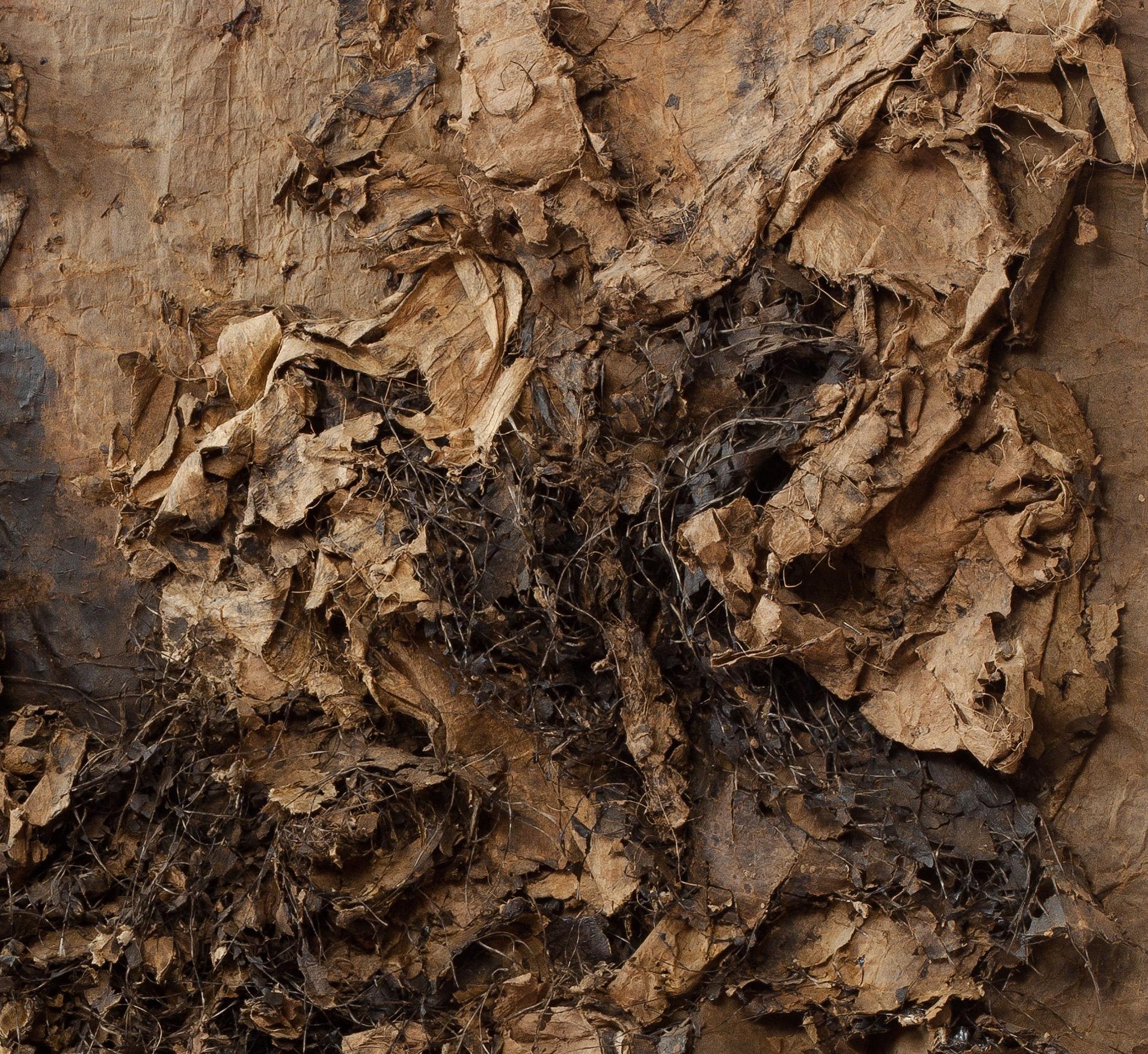 "Untitled" Gene Hedge, Mixed Media, Collage abstrait, Matériaux trouvés, Marron
