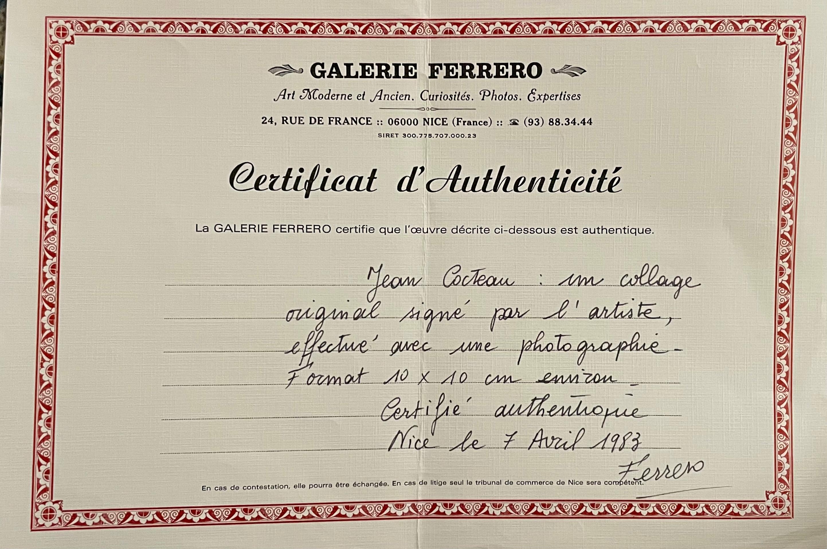 Jean Cocteau"" La dame étonnée "" collage signé1958