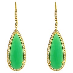 Paire de boucles d'oreilles lumineuses en jadéite birmane de type A, totalisant environ 3 carats, d'une teinte vert pomme vive appréciée pour sa fraîcheur et sa translucidité. Chaque...