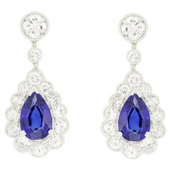 Pendants d oreilles anciens en or 18ct, saphir et diamant de style victorien