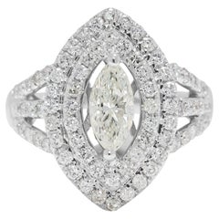 Cette magnifique bague présente un design unique avec des diamants naturels, totalisant 4,51 carats, sertis dans de l'or blanc lustré de 18kt. L'anneau en or blanc ajoute une touche ...
