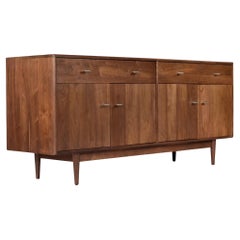 Les amateurs de mobilier moderne du milieu du siècle citeront les grands meubles muraux modulaires fabriqués en teck et autres bois recherchés de l'époque par des artistes tels que George Nelson, Poul Cadovius et Finn Juhls. Pour ces meubles hautement personnalisables, les designers de l'époque ont proposé une alternative aux grandes et lourdes bibliothèques en envisageant l'utilisation de l'espace - et, en particulier, des murs - de manière nouvelle et innovante. Les crédences modernes du milieu du siècle, qui, longues et basses, sont issues des tables construites dès le XIVe siècle en Italie, n'ont généralement pas de pieds ou des pieds très courts et ont gagné en popularité au fil du temps en tant qu'option de rangement séduisante.