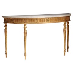 Console néoclassique italienne de style Foliage avec plateau en marbre et pieds cannelés, vers 1780