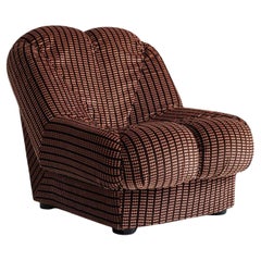 Fauteuil, modèle "H-269", conçu par Jindřich Halabala. Produit par Spojené UP závody Brno dans l'ancienne Tchécoslovaquie, années 1930. Accoudoirs en hêtre teinté, récemment retapiss...
